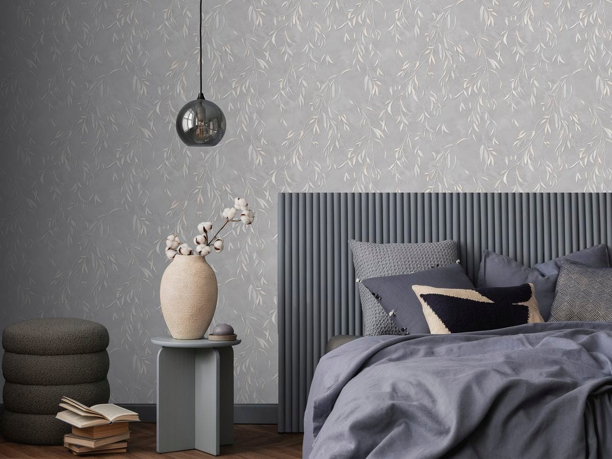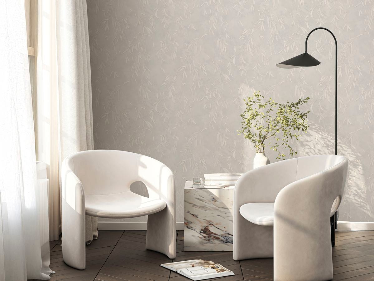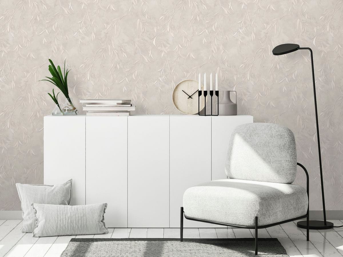 Приглушённая палитра природных оттенков, оливковый, дымчато-зеленый, теплый бежевый, наполняет интерьер ощущением уюта, гармонии и баланса. Эти обои не спорят с пространством, а мягко его дополняют, создавая атмосферу покоя и утончённой элегантности.