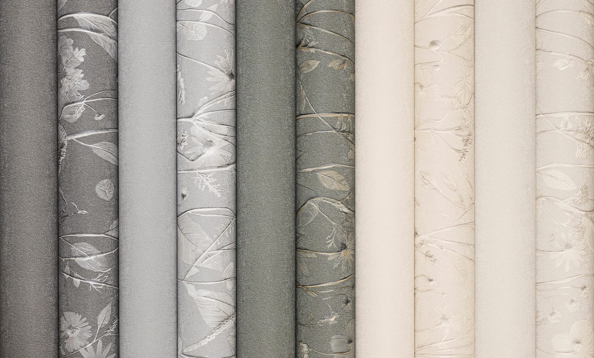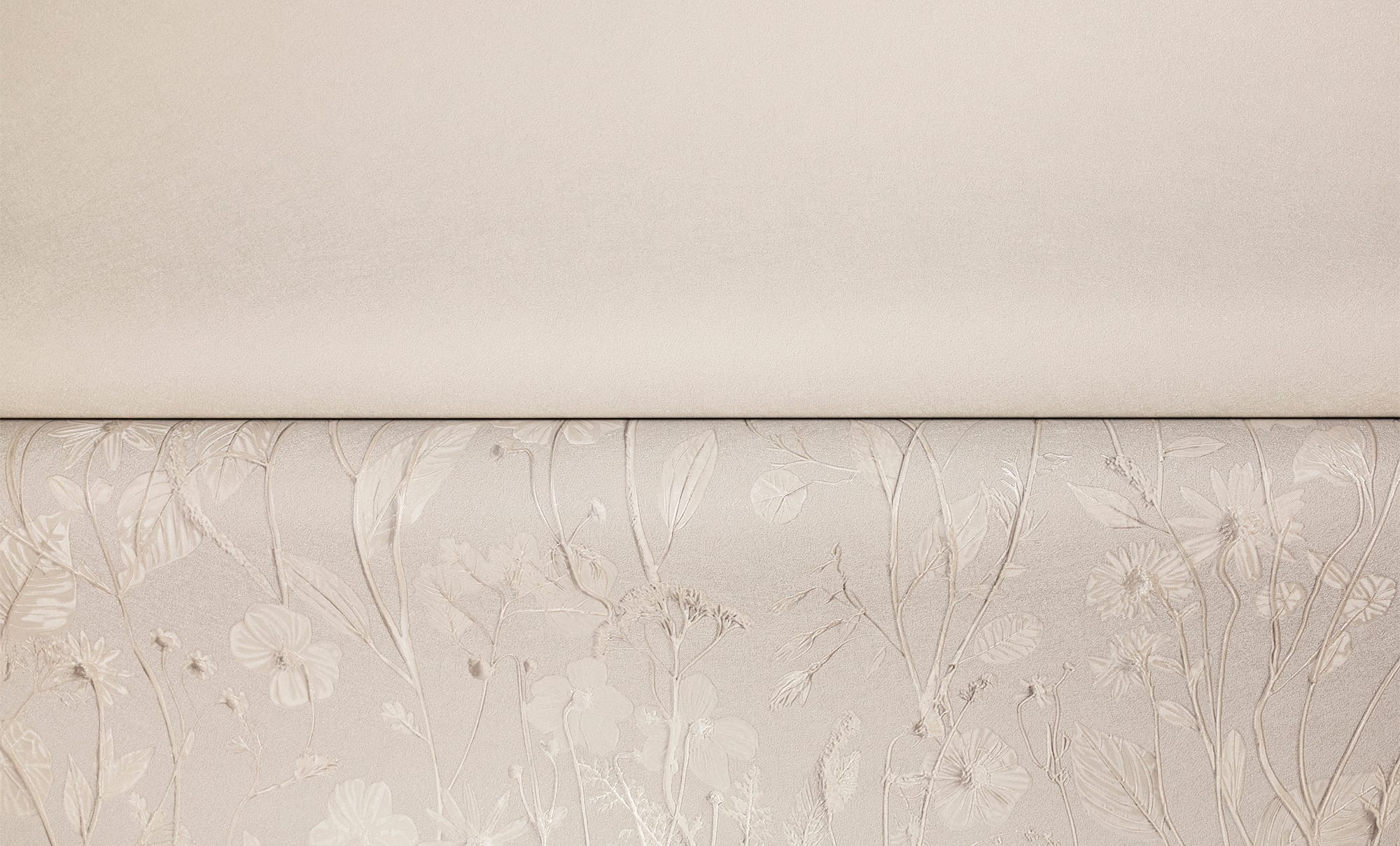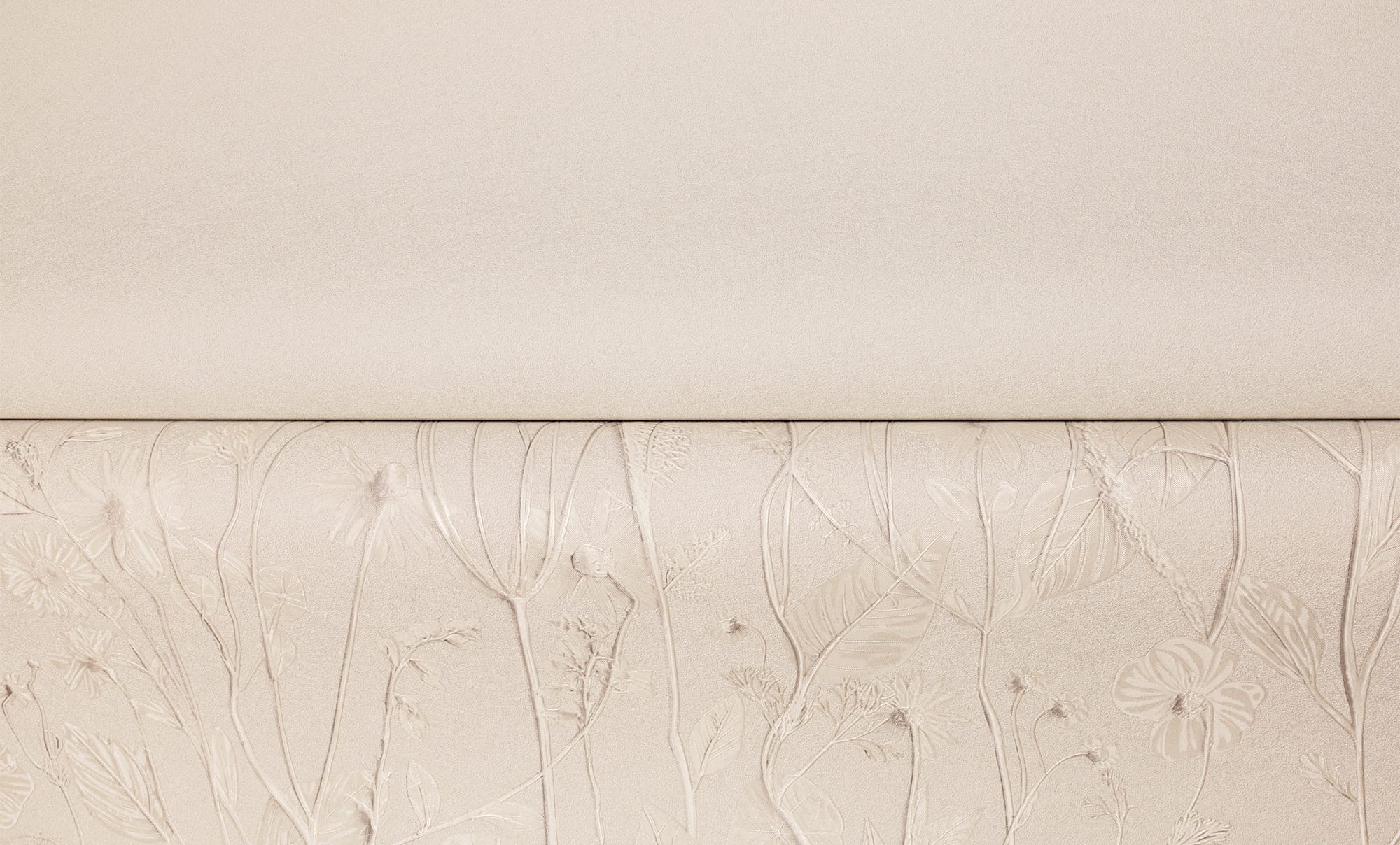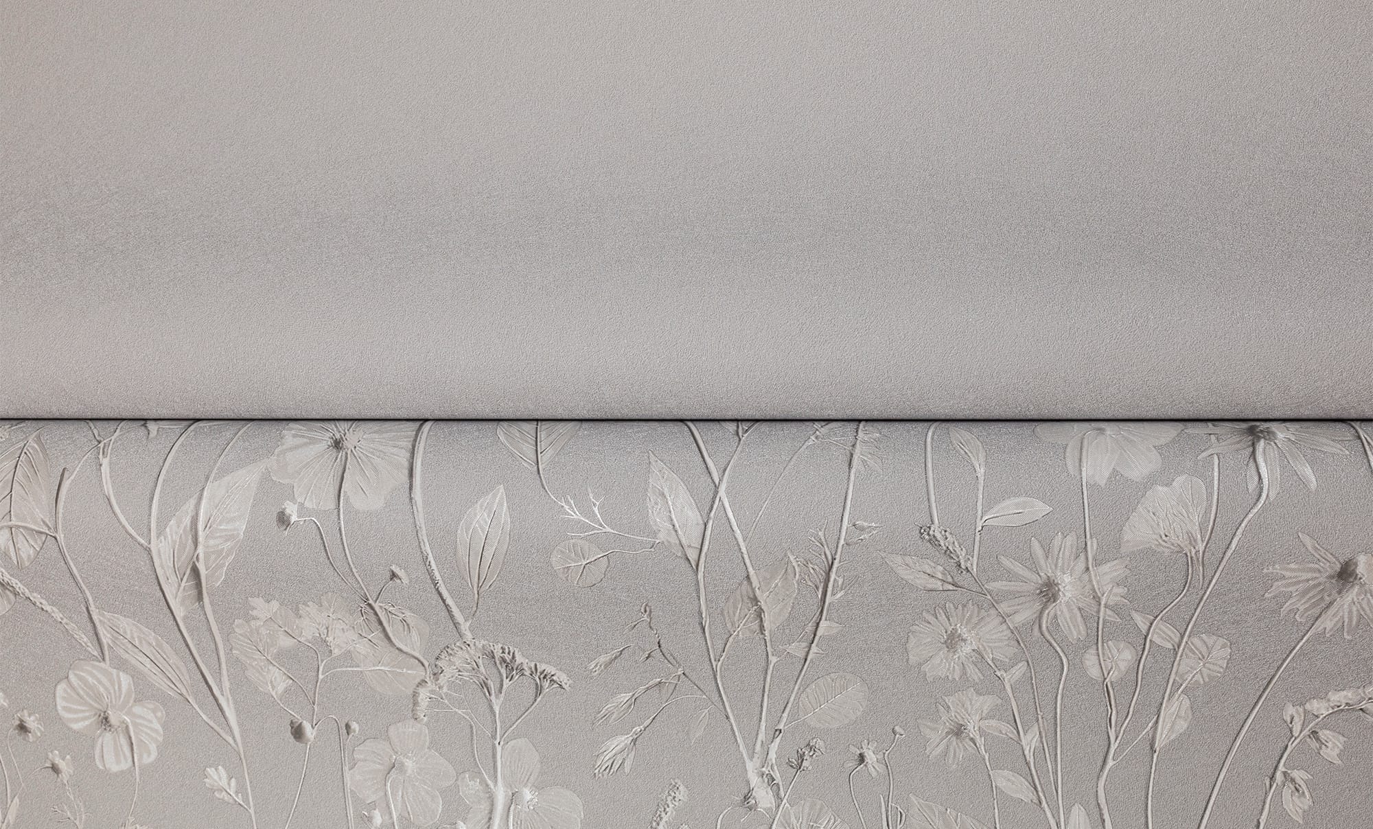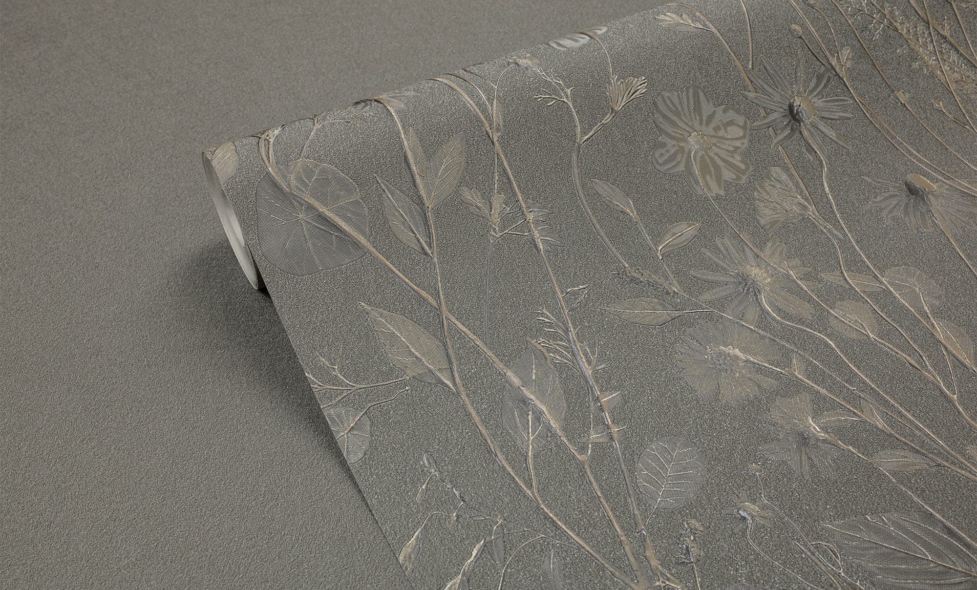 Новая коллекция Avalon ТМ Ateliero —это картина, написанная самой природой. На поверхности обоев раскрывается изящный растительный узор: тонкие стебли, утончённые листья и нежные цветы — воздушные, полупрозрачные, словно сотканные из утреннего тумана. Каждый бутон в рисунке кажется уникальным: одни — только распускаются, робко склоняясь набок, другие — раскрыли свои лепестки. Палитра коллекции выдержана в природных оттенках: серо-зелёной, жемчужно-бежевой, дымчато-серой, а перламутровые акценты и лёгкие отблески подчеркивают рельеф, делая пространство уютным, но при этом изысканным.