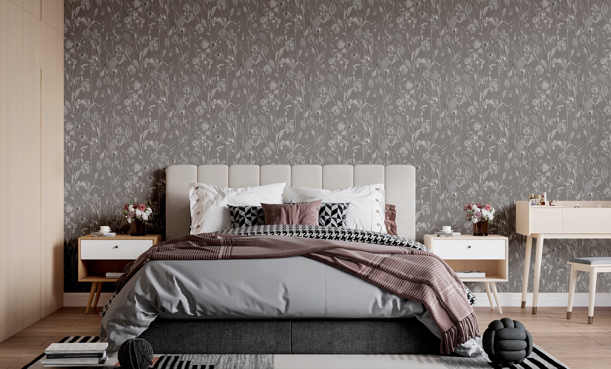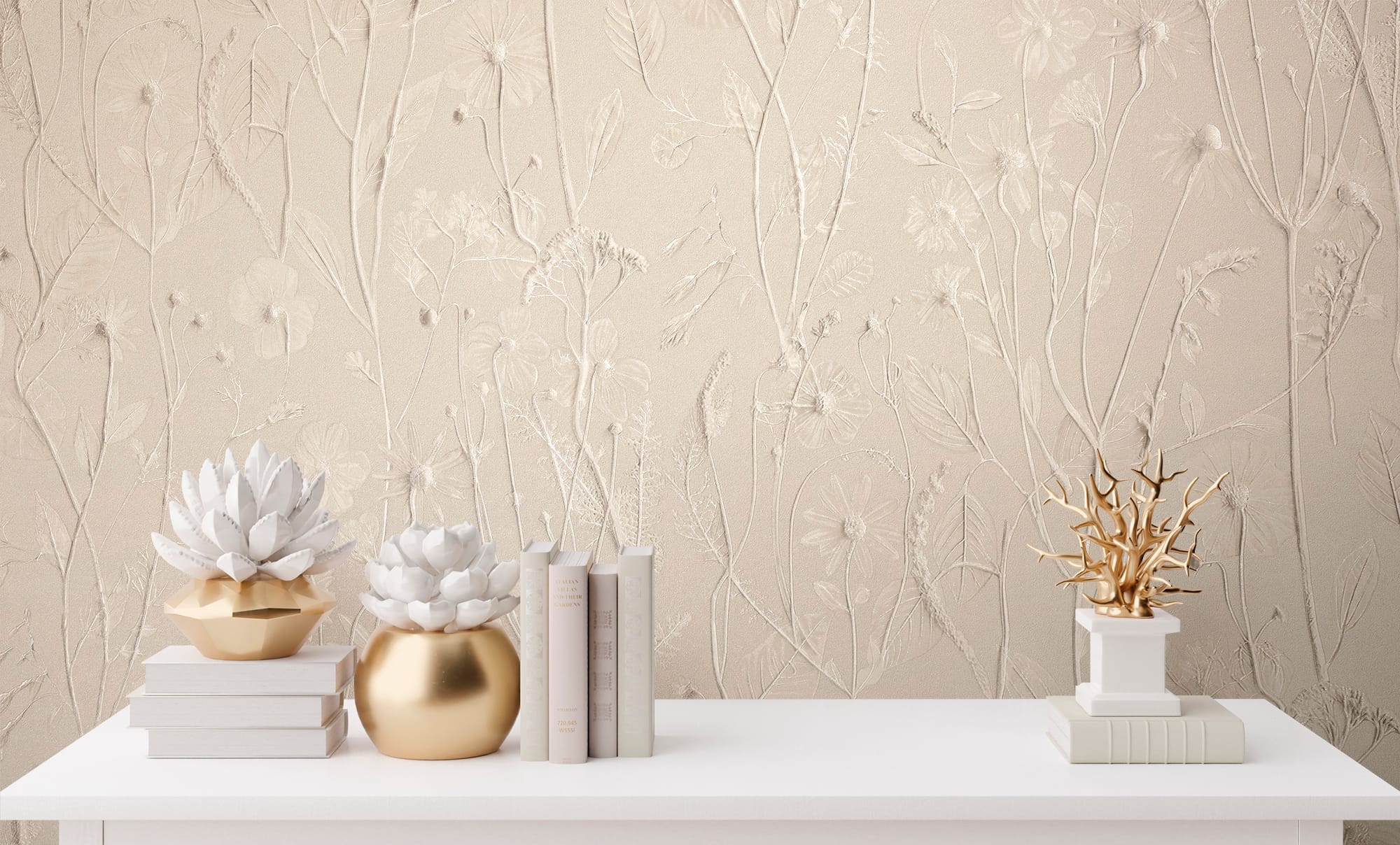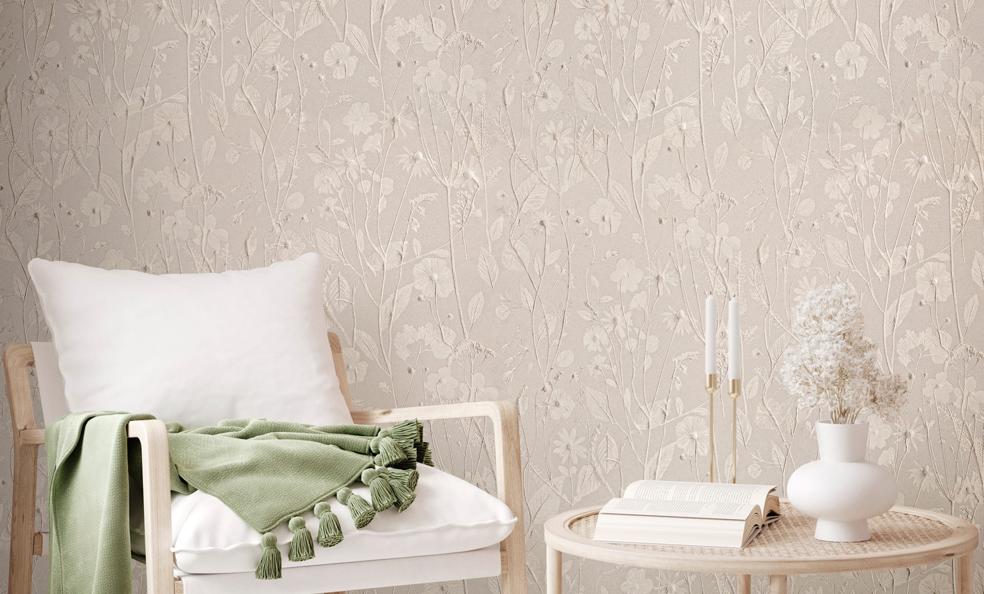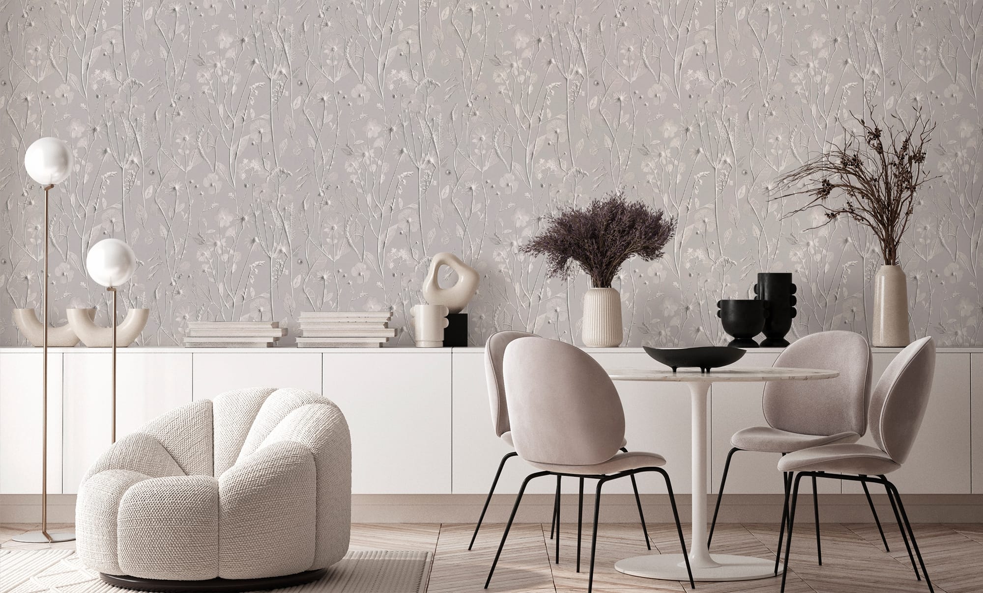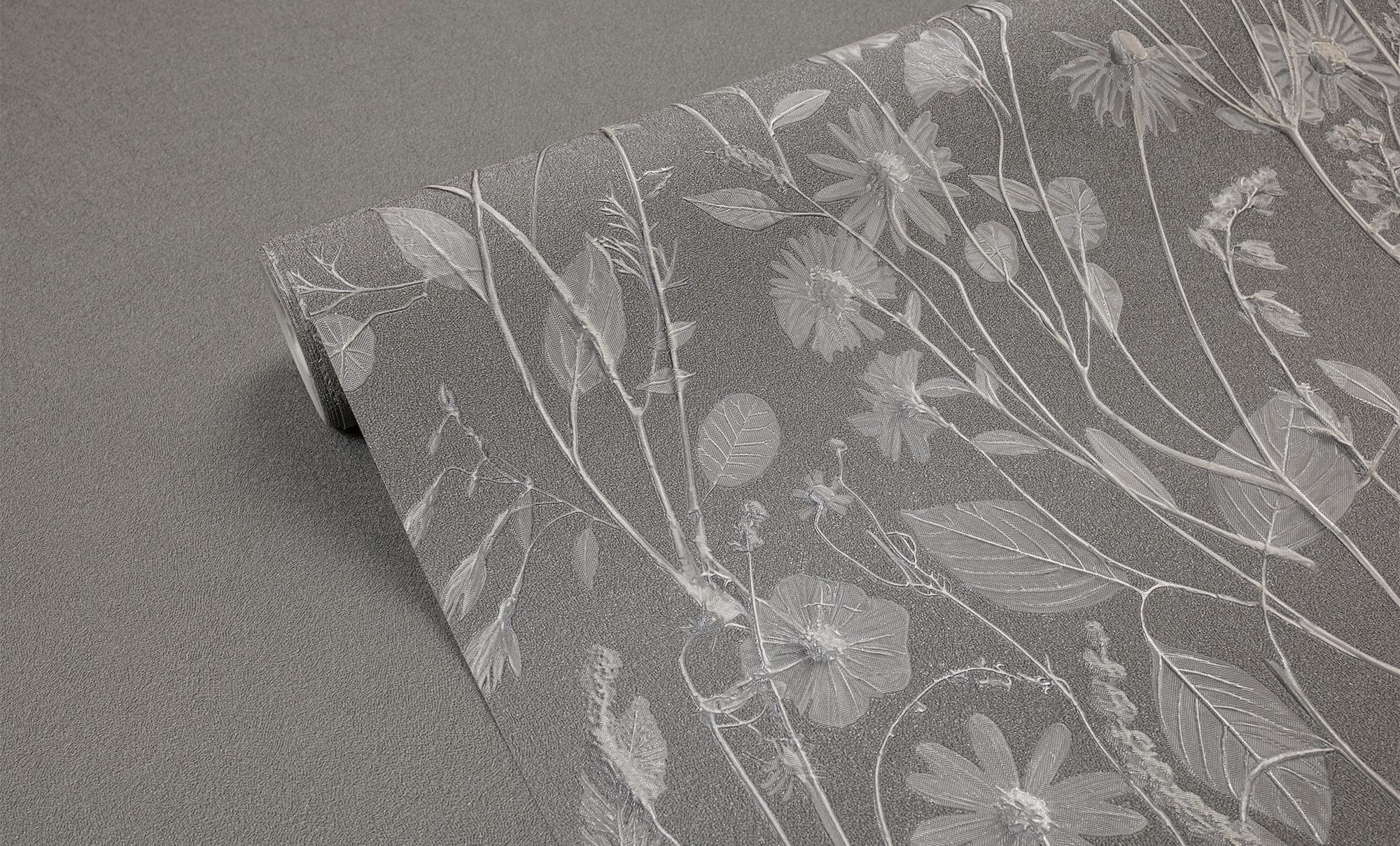 Новая коллекция Avalon ТМ Ateliero —это картина, написанная самой природой. На поверхности обоев раскрывается изящный растительный узор: тонкие стебли, утончённые листья и нежные цветы — воздушные, полупрозрачные, словно сотканные из утреннего тумана. Каждый бутон в рисунке кажется уникальным: одни — только распускаются, робко склоняясь набок, другие — раскрыли свои лепестки. Палитра коллекции выдержана в природных оттенках: серо-зелёной, жемчужно-бежевой, дымчато-серой, а перламутровые акценты и лёгкие отблески подчеркивают рельеф, делая пространство уютным, но при этом изысканным.