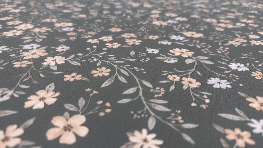 Цветочный узор в коллекции раскрывается через утонченную, изящную композицию. Лепестки, ветви и мелкие соцветия образуют спокойный, ритмичный рисунок, который не перегружает пространство, а мягко оживляет его. Особое впечатление производит фактура. Поверхность с текстильным эффектом делает рисунок более глубоким , тактильным и уютным.
