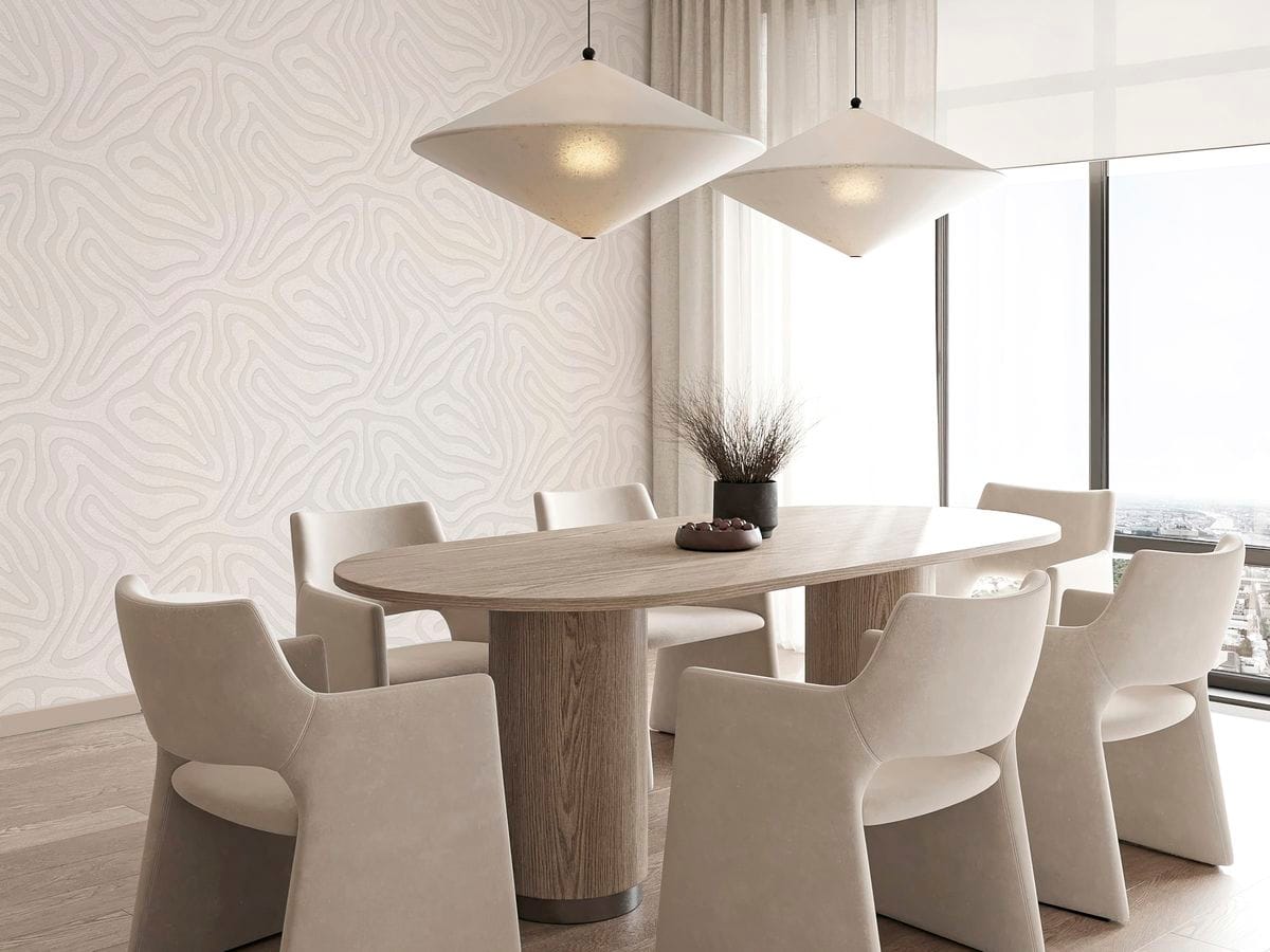 Инновационный мотив с плавной, органичной геометрией в коллекции GRAVITA / ГРАВИТА создает ощущение движения и глубины. Объемное тиснение формирует выразительный 3D-рельеф, который оживает при любом освещении и создает мощный вау-эффект.