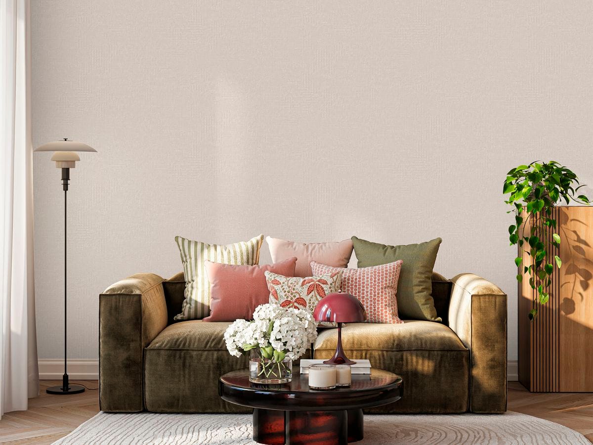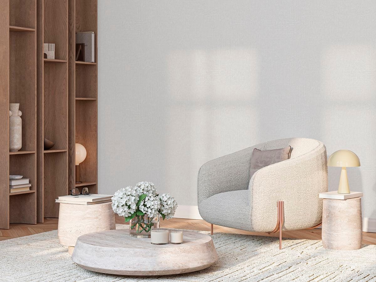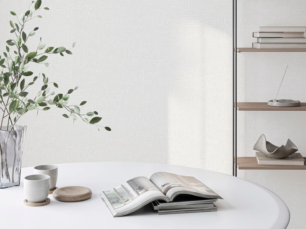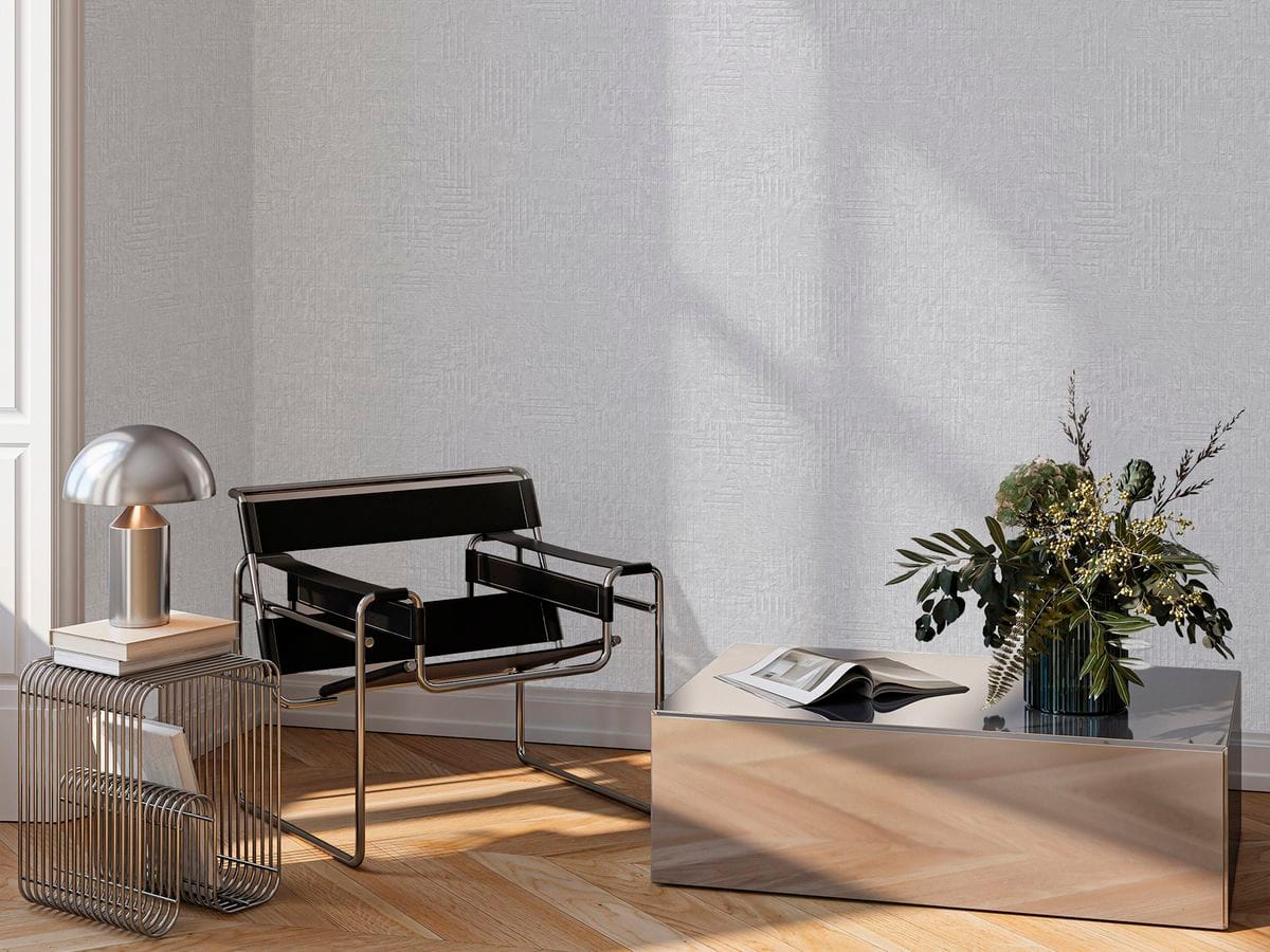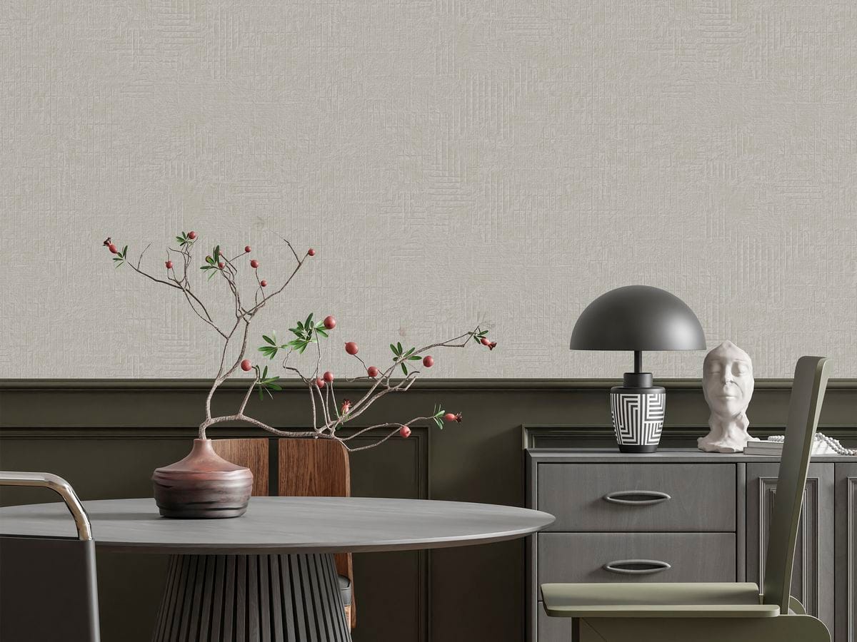 Геометрический рисунок выполнен в тиснении, что придаёт композиции чёткий ритм и архитектурность. Линии и формы образуют продуманную структуру, добавляя интерьеру графичности и характера. При этом геометрия остаётся сбалансированной — она не перегружает пространство, а формирует стильную основу интерьера.