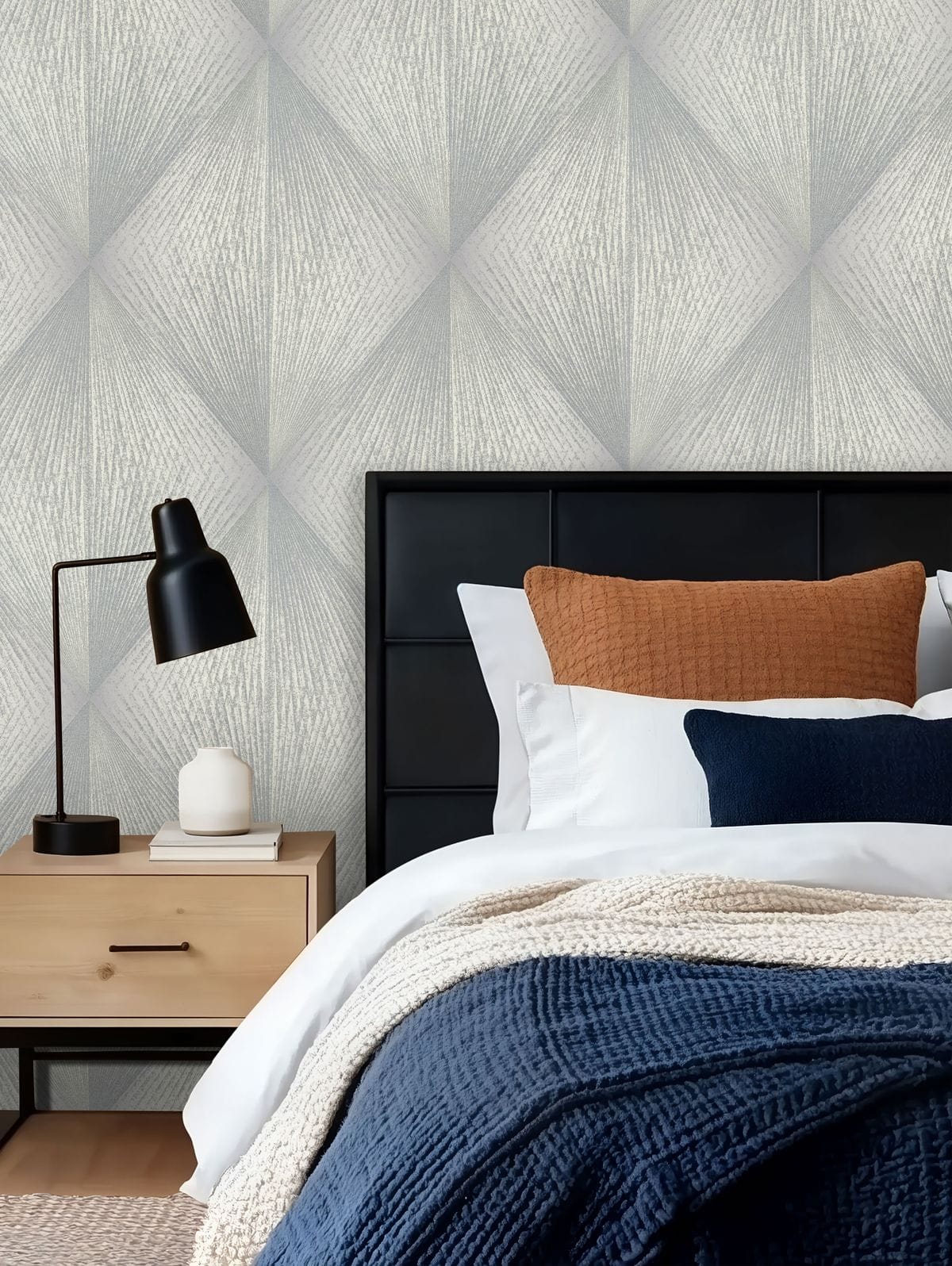Благодаря сочетанию геометрии, текстильной фактуры и мягкого мерцания коллекция «Искра» органично вписывается в современные интерьеры. Такие обои особенно эффектно смотрятся в интерьерах в стиле современная классика, минимализм и арт-деко.