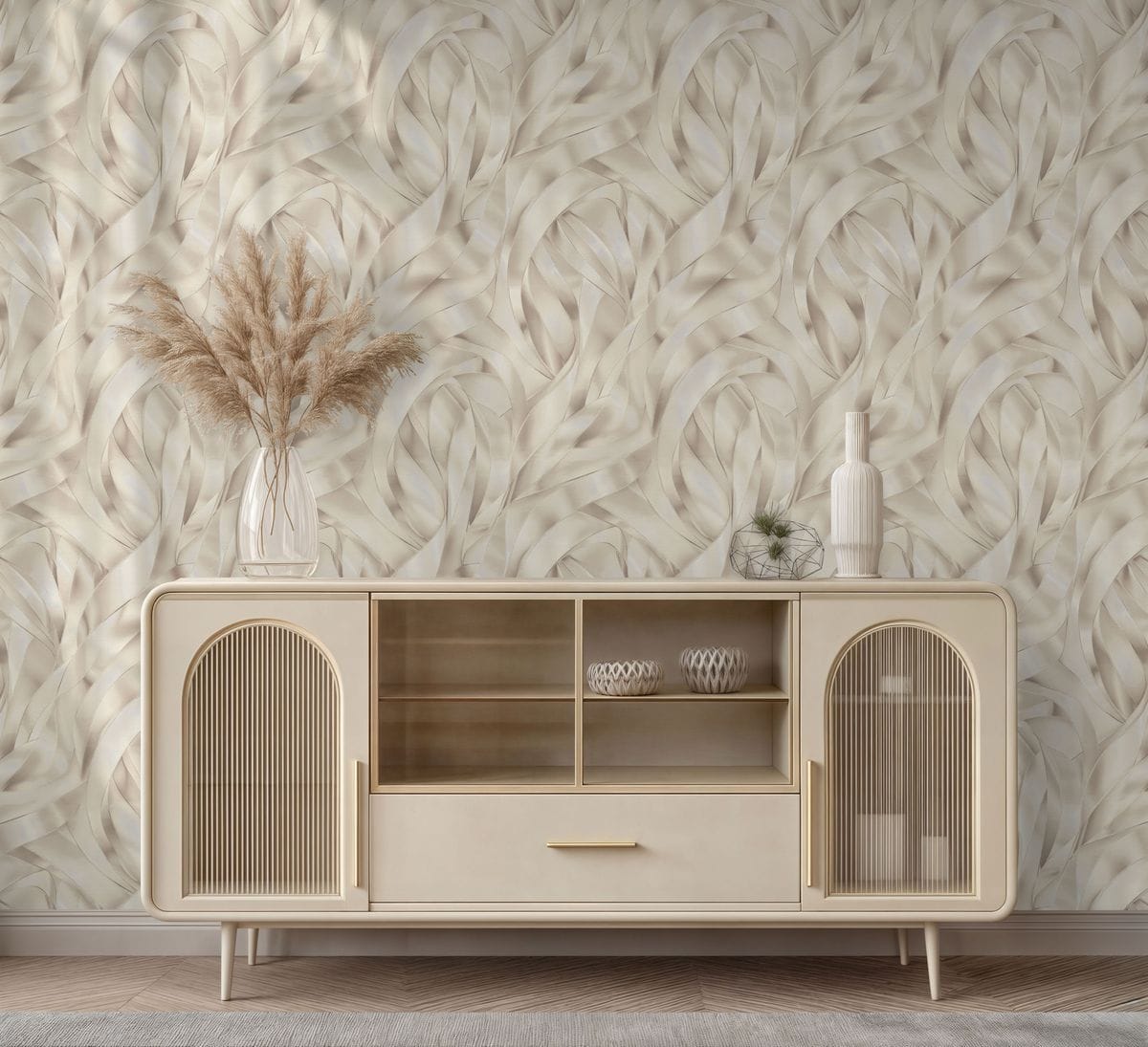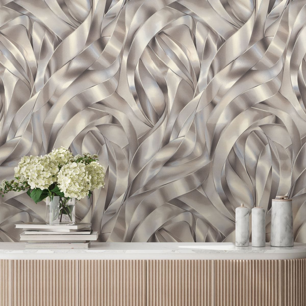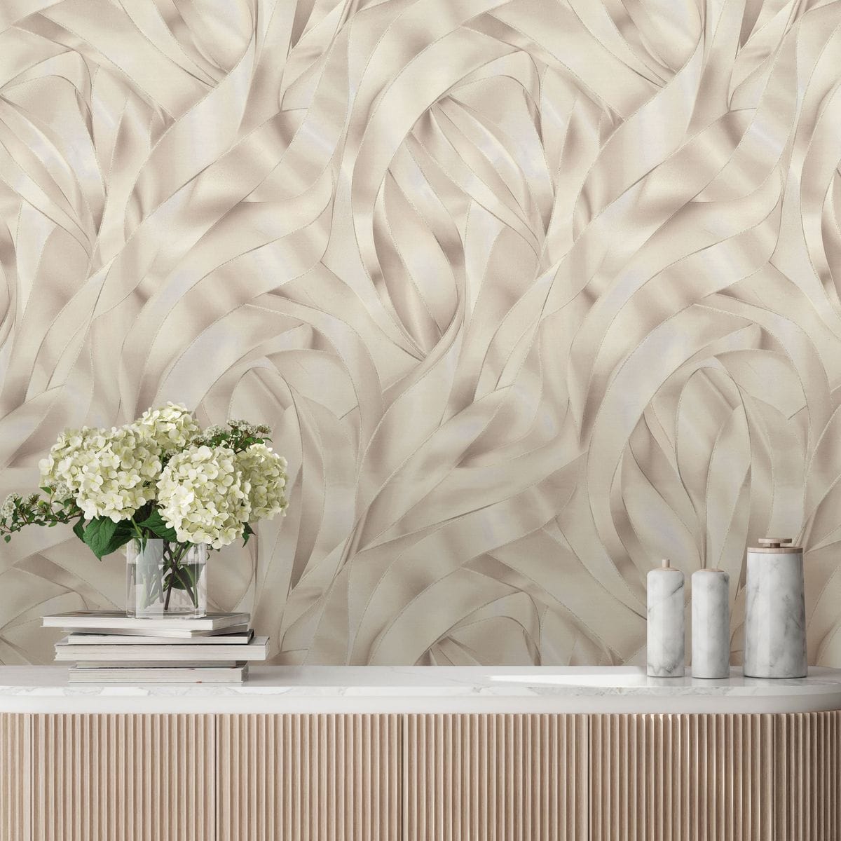 Коллекция обоев «Лиана» — это утонченная декоративная композиция, вдохновленная грацией шелковых лент. Название отражает саму природу рисунка: плавный, непрерывный ритм, в котором линии мягко изгибаются, переплетаются и наслаиваются друг на друга.