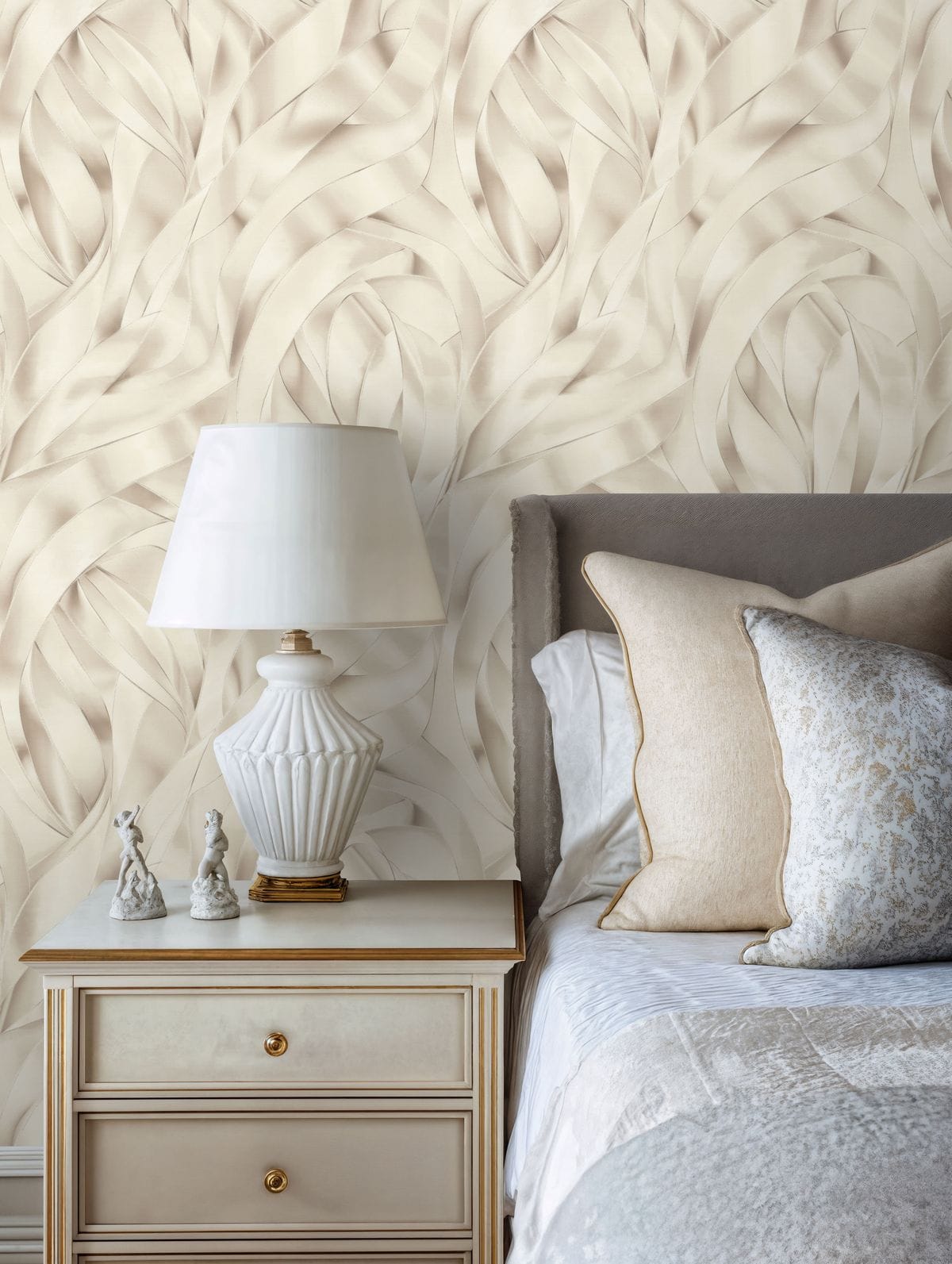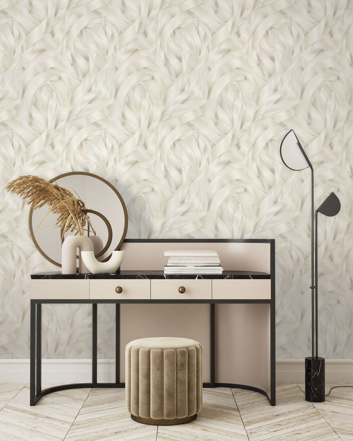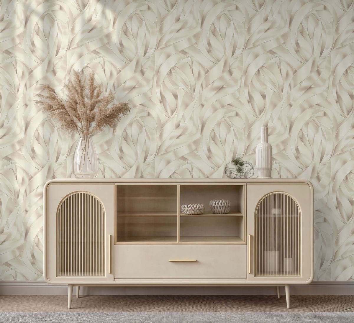 Коллекция обоев «Лиана» — это утонченная декоративная композиция, вдохновленная грацией шелковых лент. Название отражает саму природу рисунка: плавный, непрерывный ритм, в котором линии мягко изгибаются, переплетаются и наслаиваются друг на друга.
