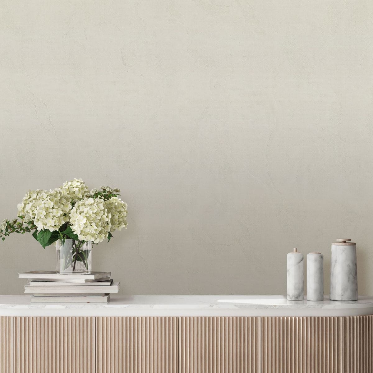 Коллекция дополнена однотонными фонами, идеально повторяющими цветовую гамму и фактуру мотивов. Они позволяют создавать интерьерные композиции, комбинируя акцентные стены с нейтральными обоями.
