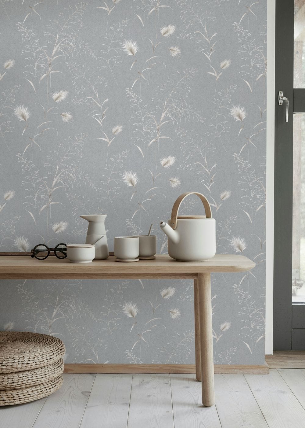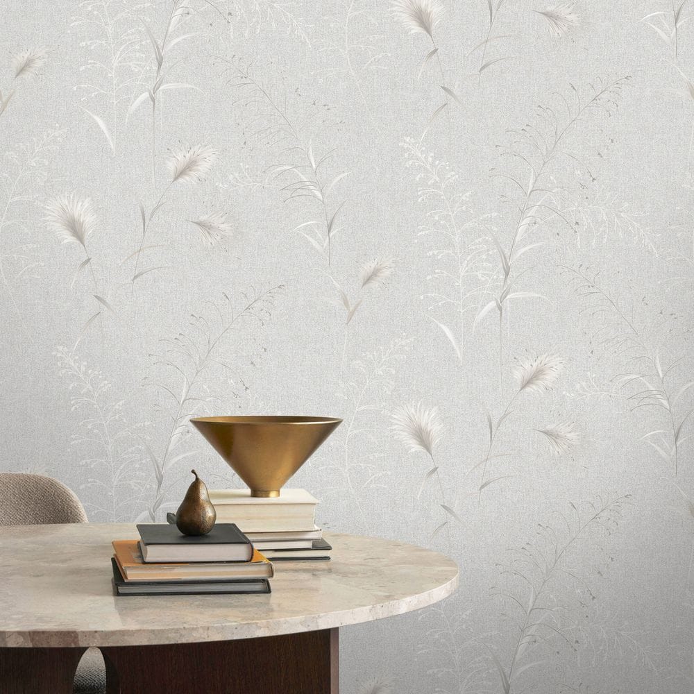 Тонкие стебли степных трав коллекции ER Light Breeze от Erismann — утонченный ботанический принт, наполненный воспоминаниями о теплом лете. Рисунок воздушный и невесомый: буквально ощущается, как легкий ветер оживляет силуэты растений, придавая композиции динамику.