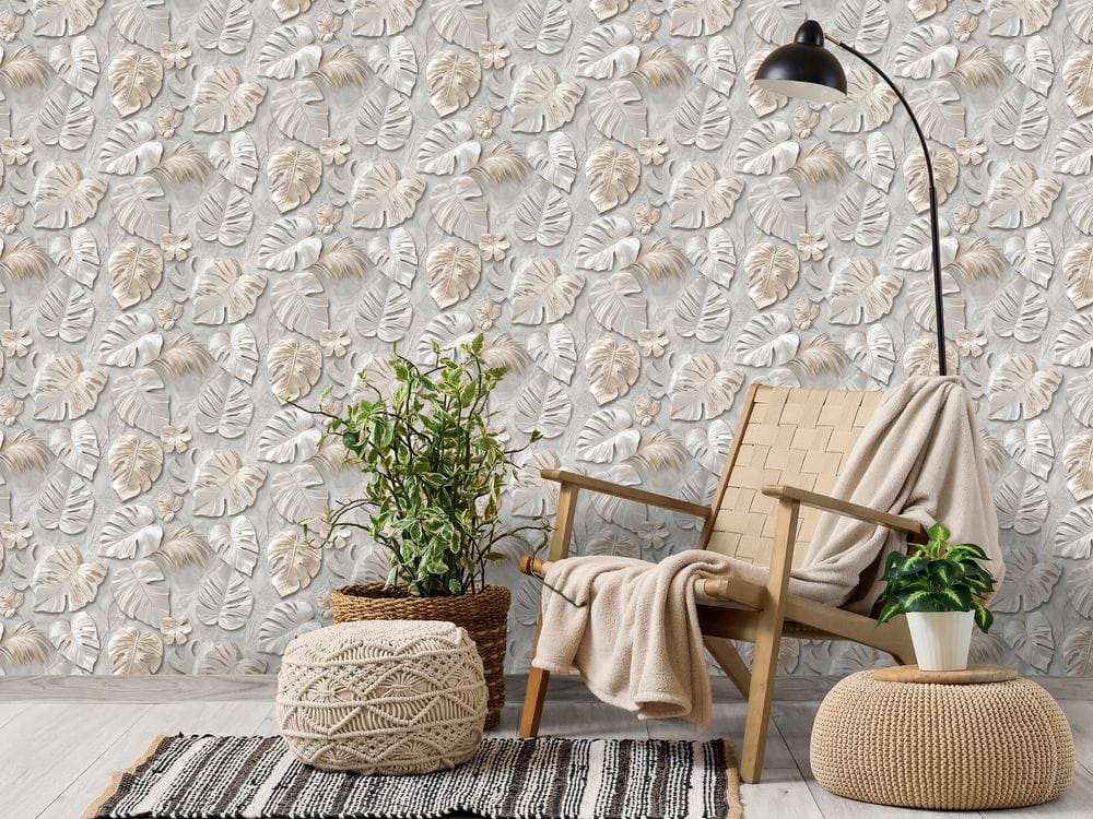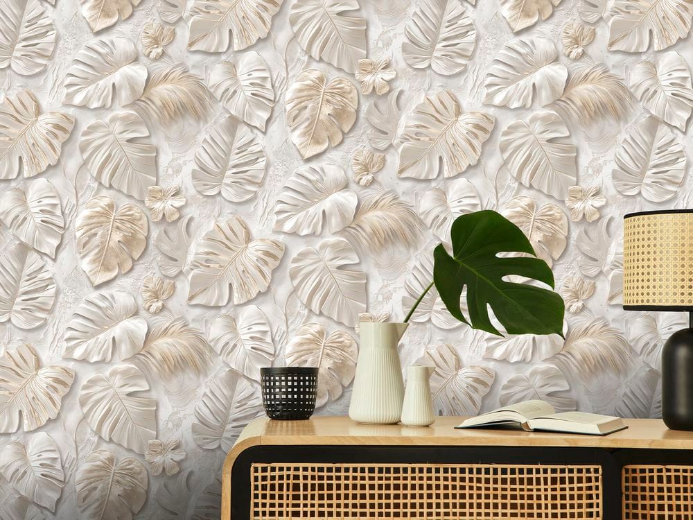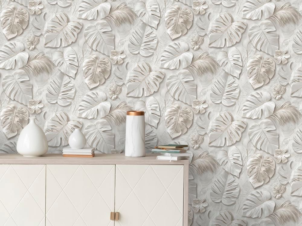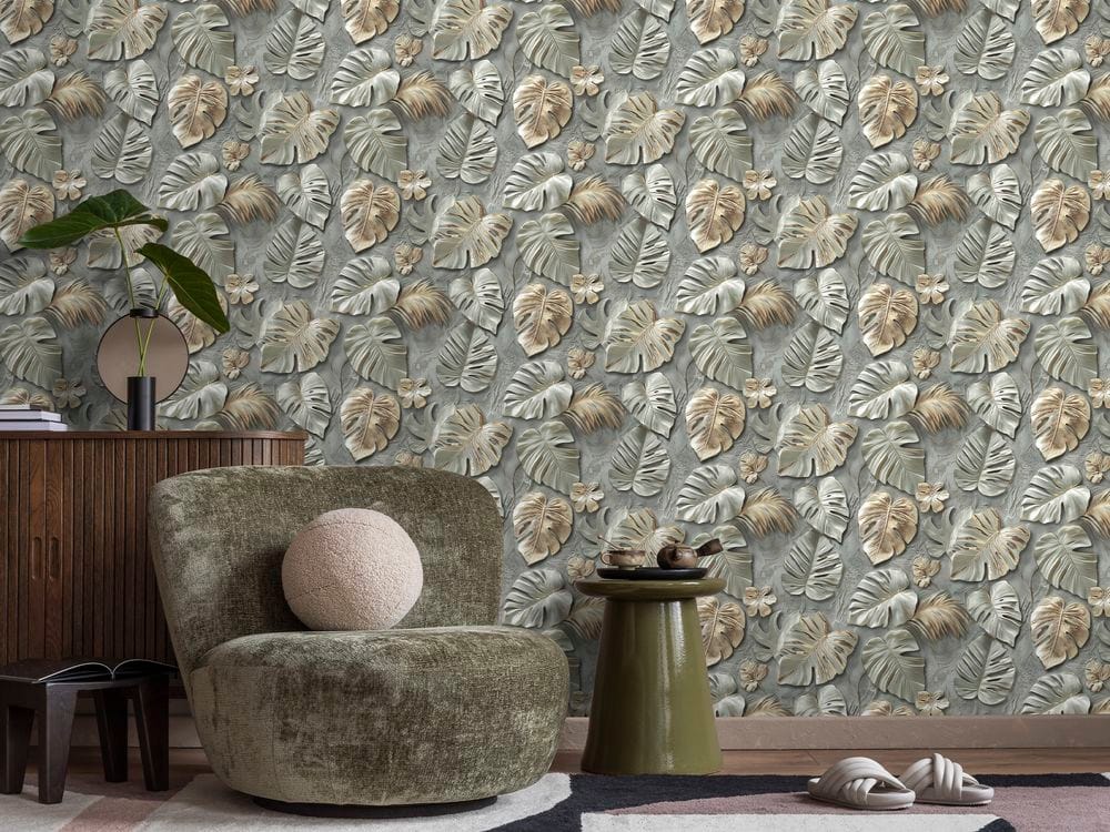 MADEIRA универсальна: она способна стать ярким акцентом в гостиной, создать атмосферу курорта в спальне или добавить динамики в современное рабочее пространство. Цветовая палитра включает трендовые комбинации: от мягких природных оттенков до благородных контрастов с золотом. Трёхмерный эффект объёмных листьев создаёт ощущение будто они выходят за пределы стены. Благородные металлизированные акценты подчеркивают фактуру и делают рисунок живым, а игра света добавляет глубину и динамику.