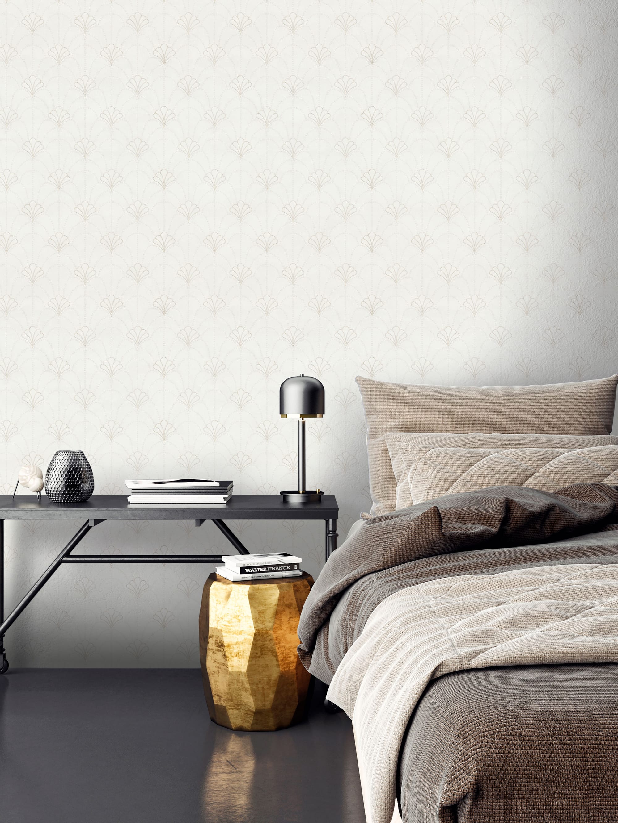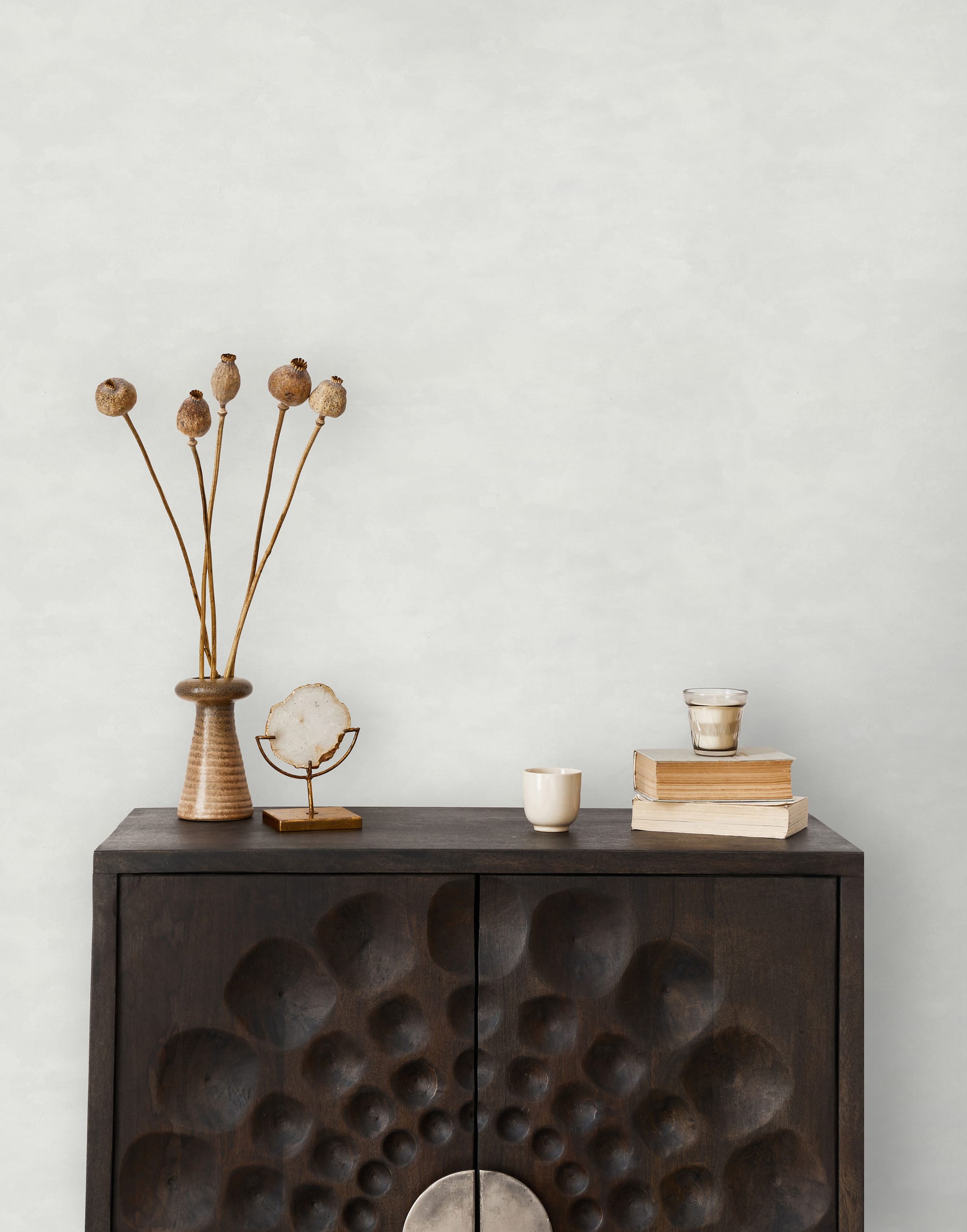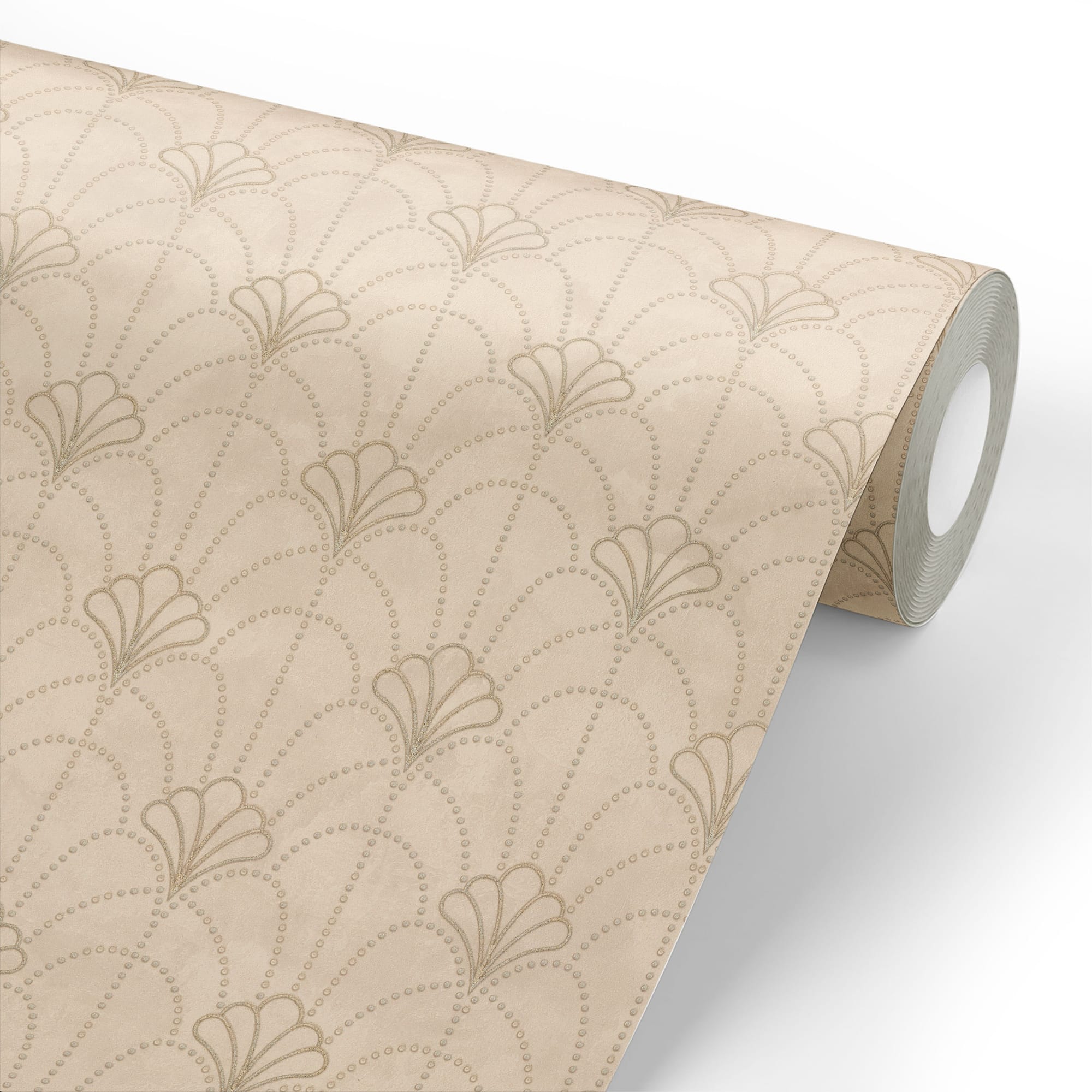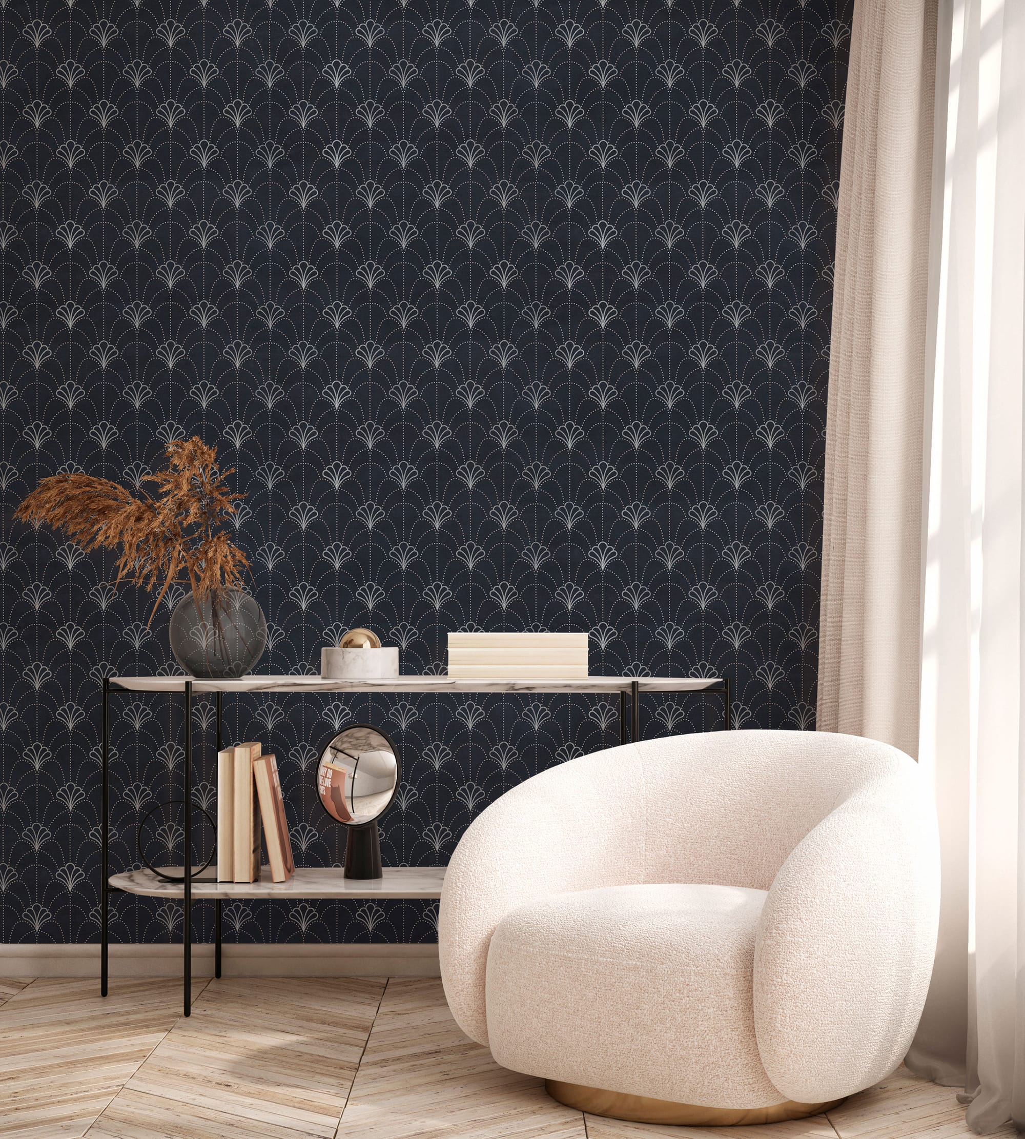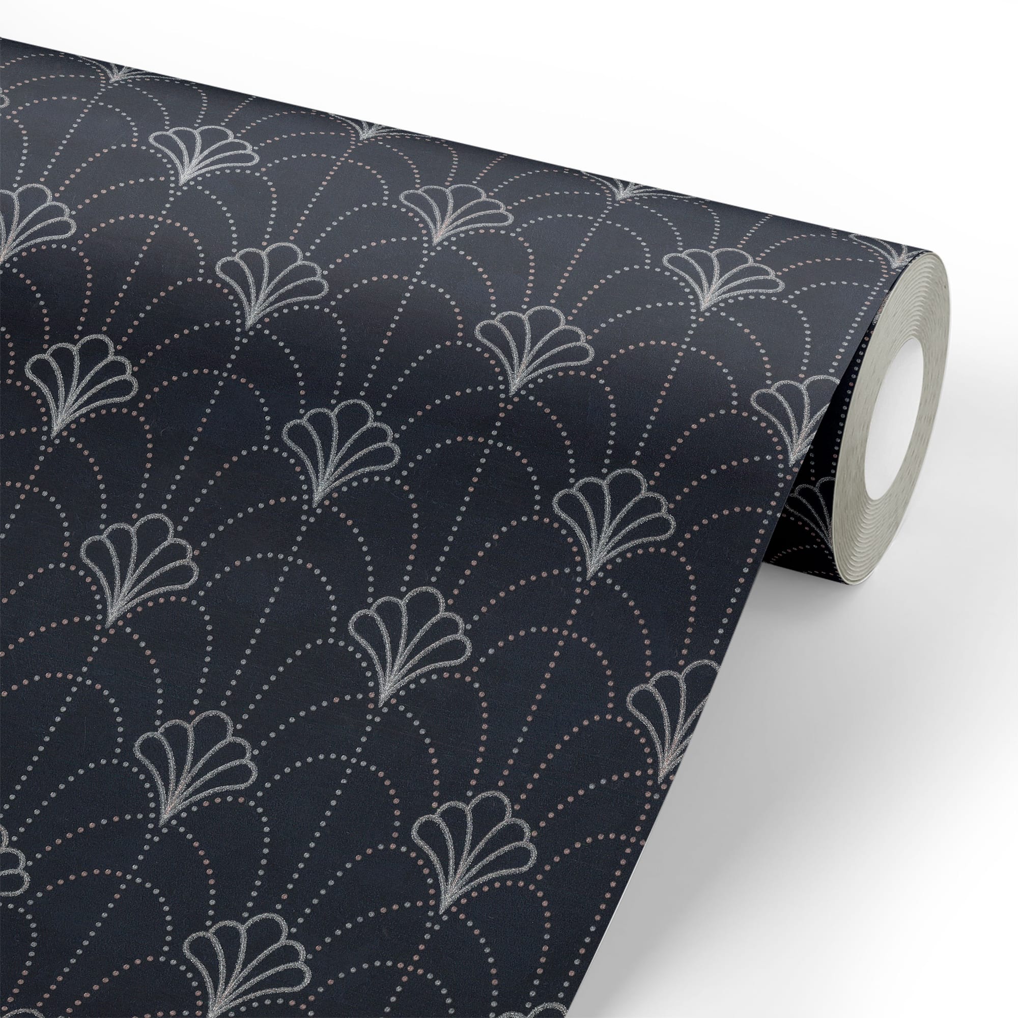 Коллекция обоев «Nero» — это воплощение утонченной элегантности и роскоши, скрытой в глубине насыщенных оттенков и изящных деталей. Фактура полотен с матовой поверхностью и легкими шероховатыми потертостями имитирует декоративный бетон. На этом фоне раскрывается изысканный орнамент в виде веерообразных фигур, напоминающих лепестки или ракушки, которые подчеркнуты рассыпчатым глиттером, создающим эффект деликатного мерцания и блеска. Узор дополнен миниатюрными акцентами, украшенными металликом, которые напоминают объемные «кнопки» или жемчужные капли. Они выстраиваются в ритмичные дугообразные линии в стиле арт-деко, придавая композиции динамику.