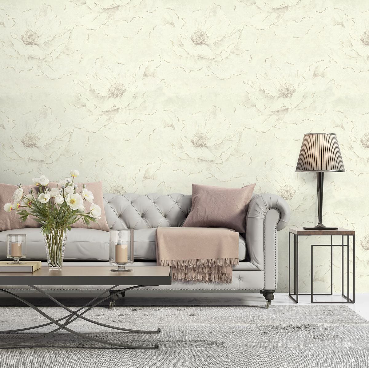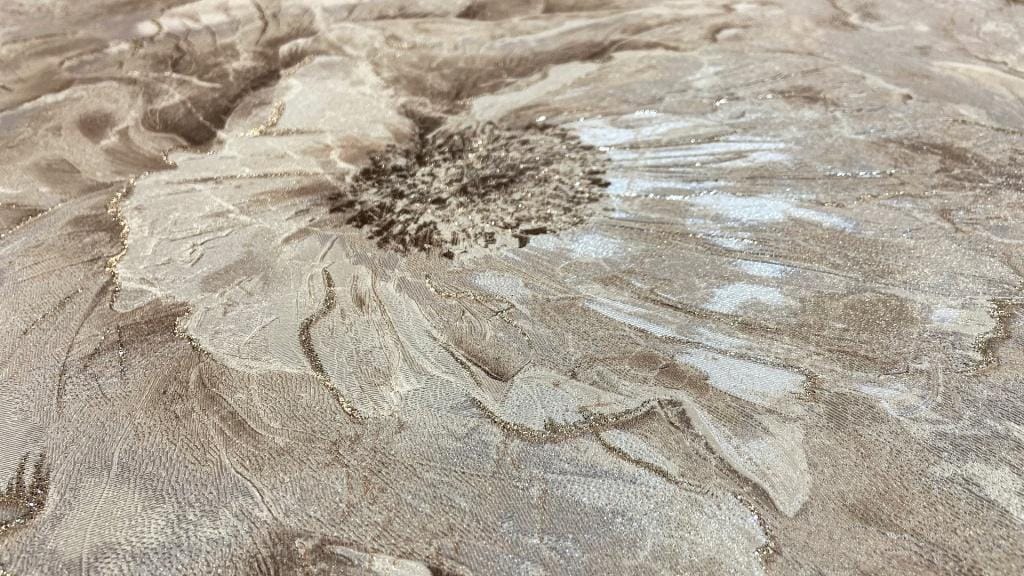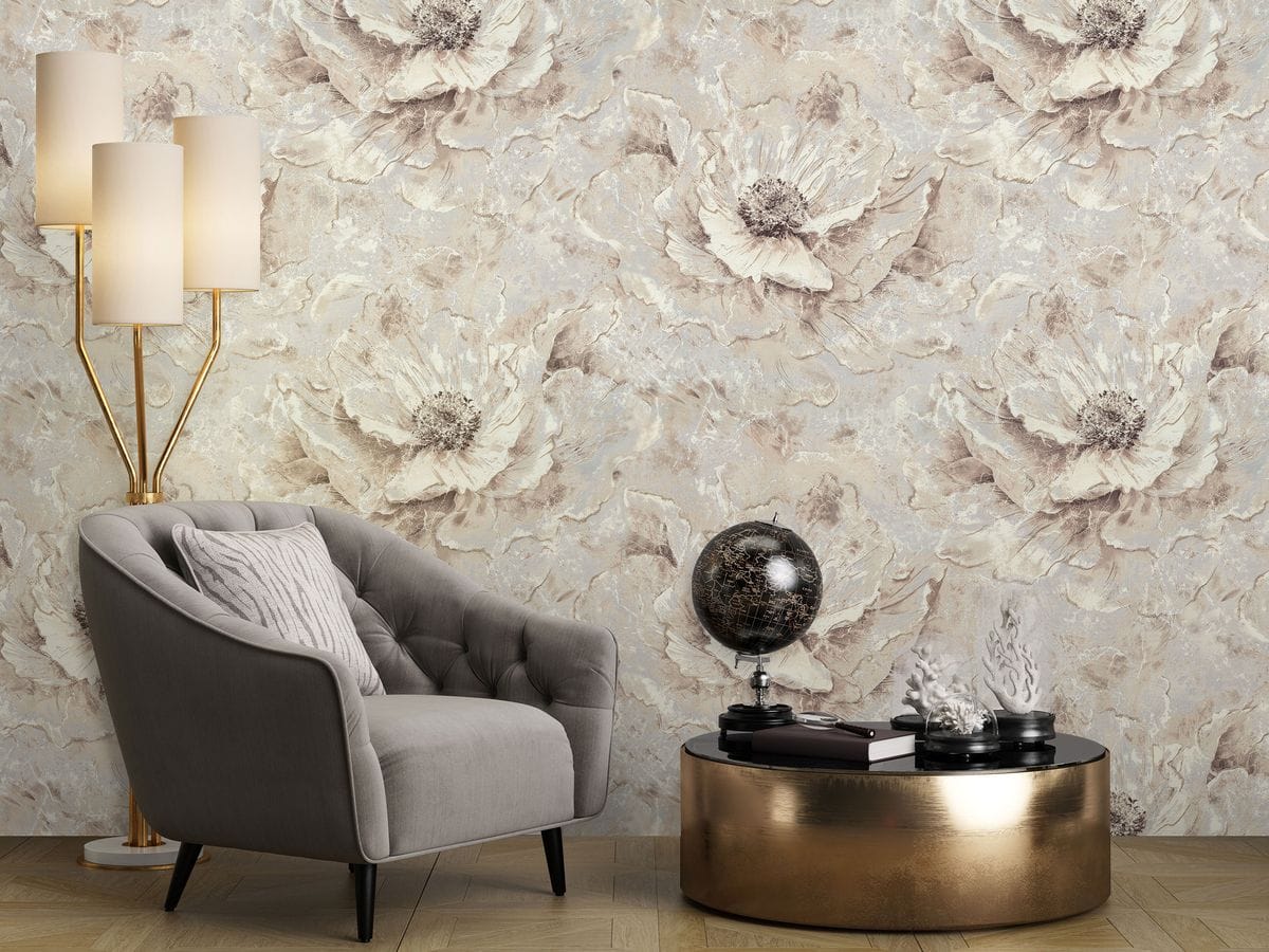 Такой орнамент создает ощущение роскоши без тяжеловесности — он заметен, но при этом сохраняет воздушность и деликатность. Мраморная поверхность передана с тонкой игрой прожилок, полутонов и мягких переливов, за счет чего полотно выглядит благородно и тактильно выразительно. Именно эта мраморная основа делает коллекцию особенно изысканной, подчеркивая ее декоративность и придавая интерьеру ощущение дорогой, продуманной отделки.