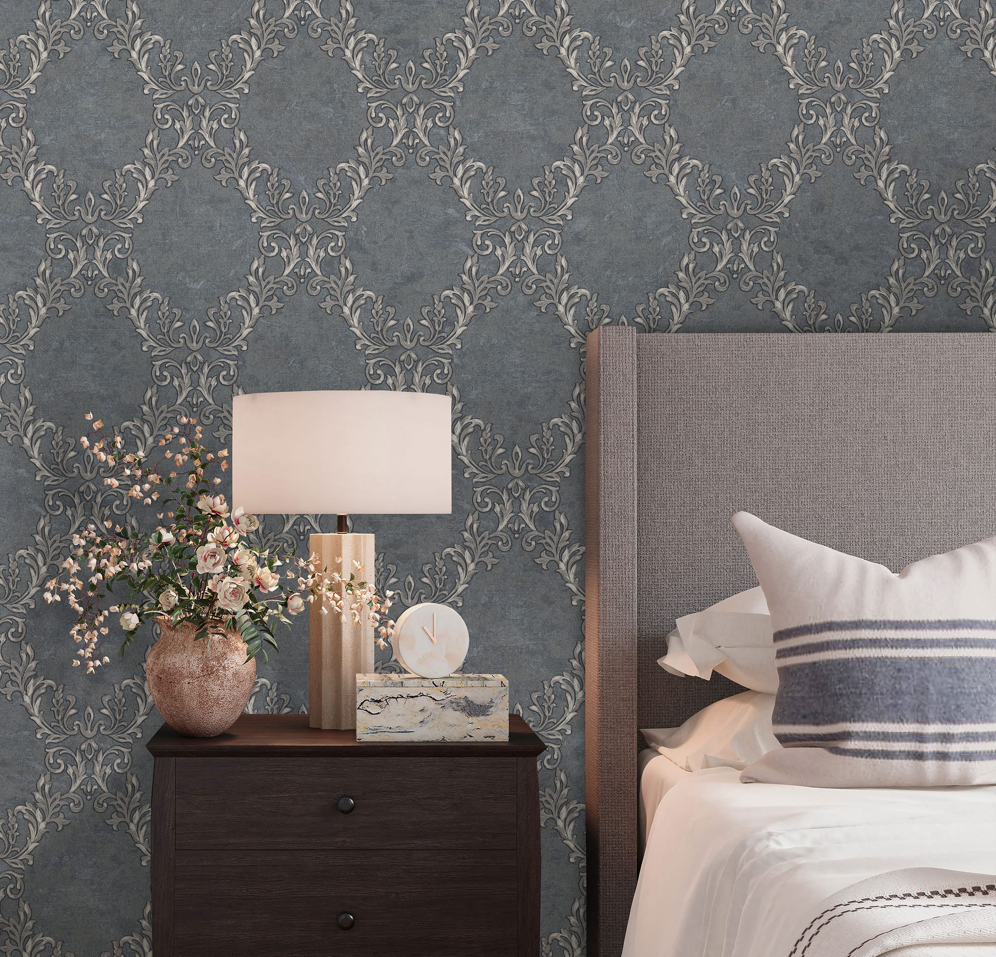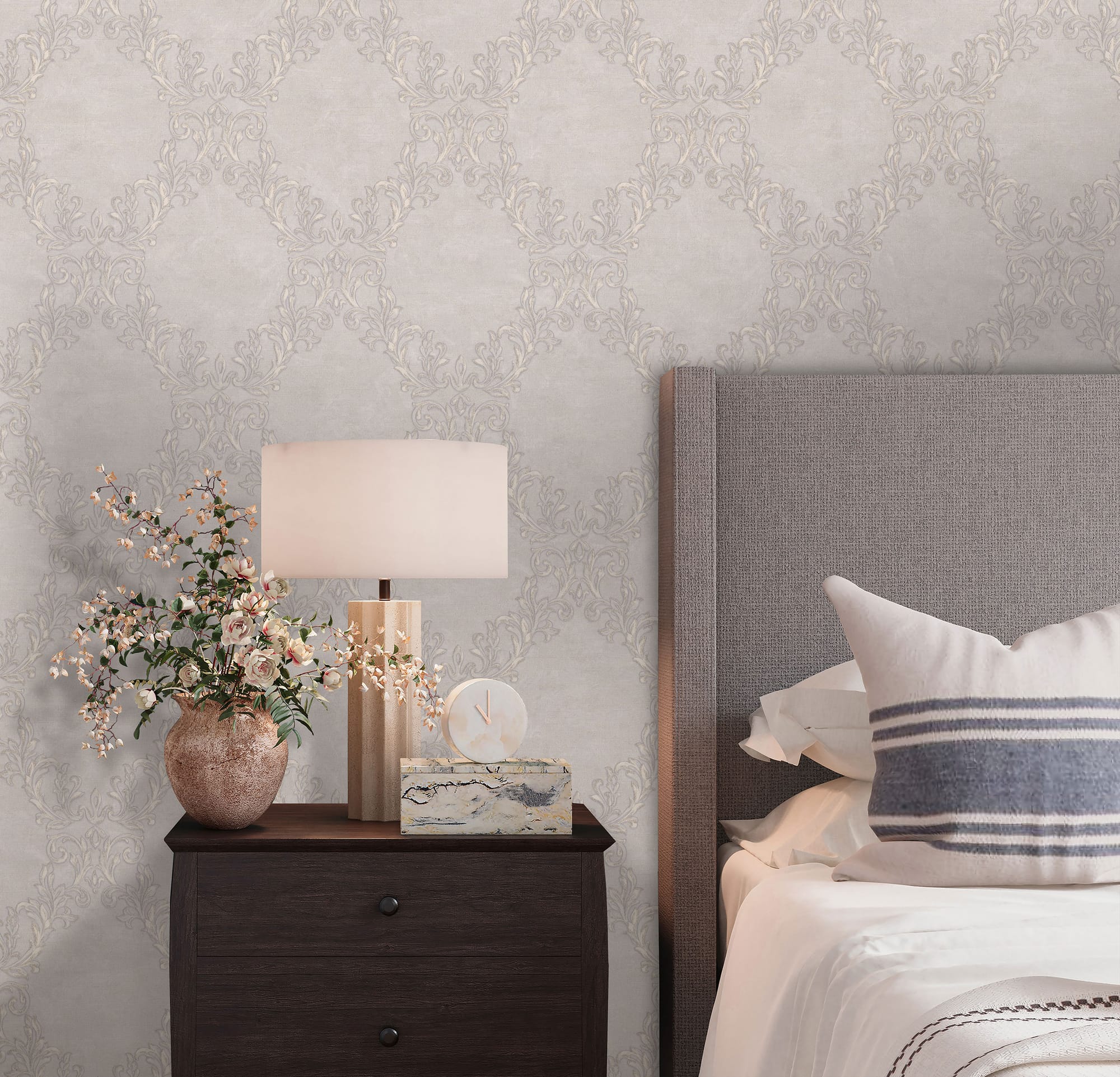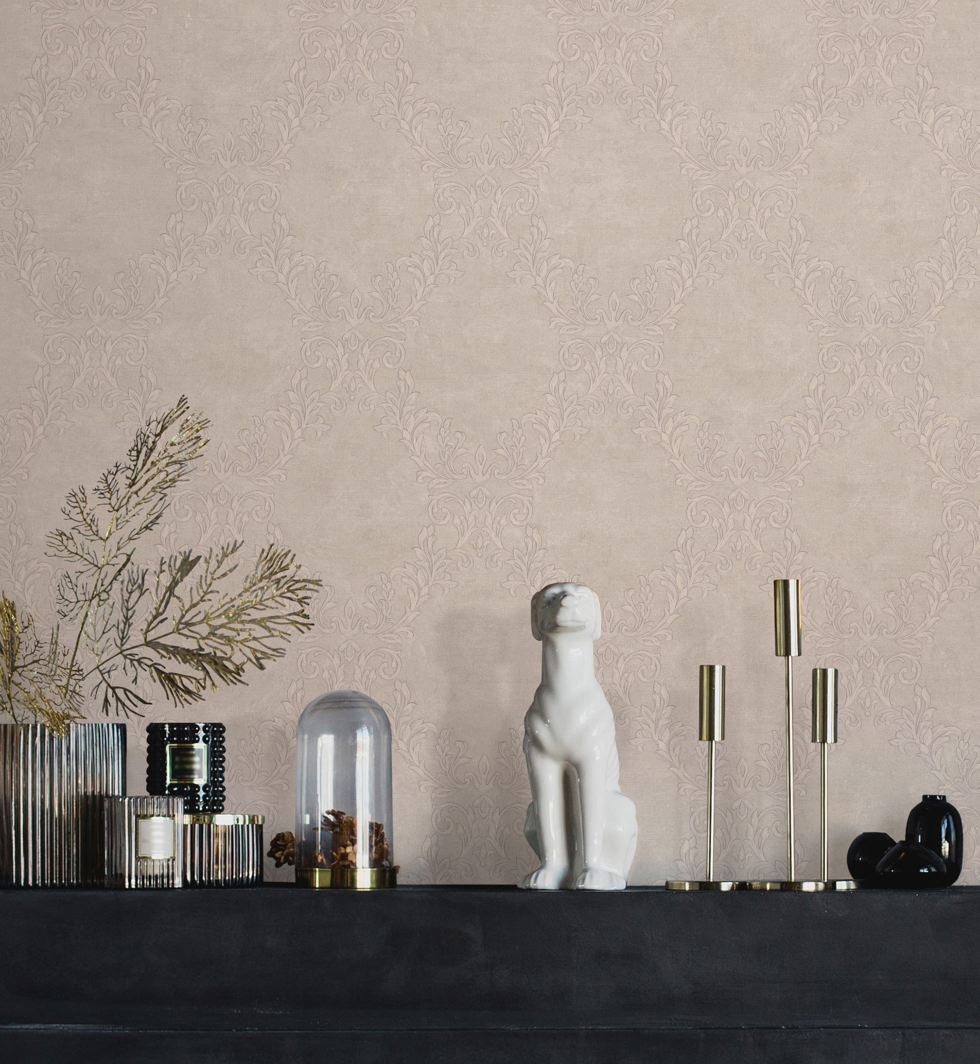 Коллекция обоев «Palazzo» — это воплощение изысканной элегантности и роскоши. Дизайн и название вдохновлены великолепием дворцовых интерьеров, создавая атмосферу аристократизма и утонченного вкуса. На фонах, имитирующих слегка шероховатую фактуру бетона, расположены изящные завитки в стиле барокко — дамаски, украшенные деликатным глиттером и металликом, которые сияют на свету.