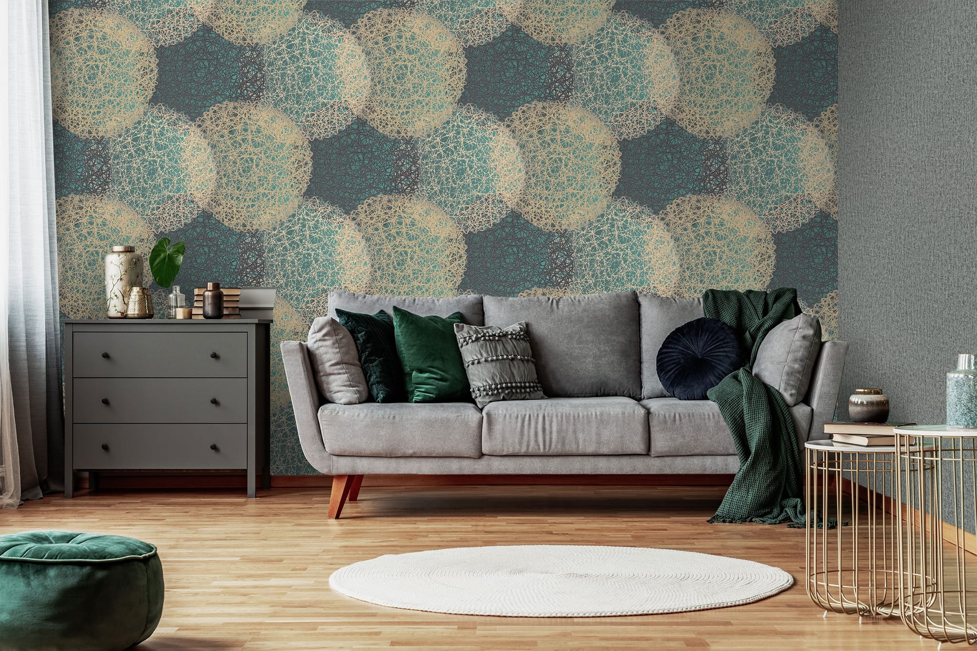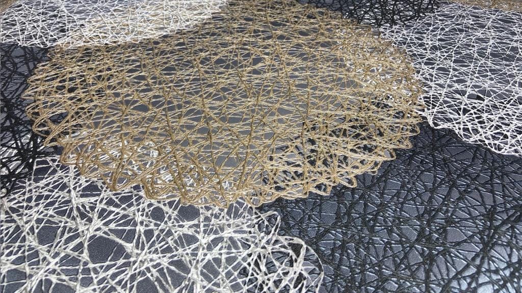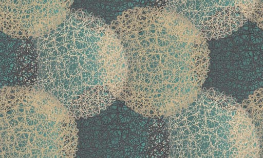 Абстрактный узор коллекции строится вокруг ажурной сети тонких нитей, формирующих крупные круги. Их очертания отсылают к водным вихрям, движениям морских течений и переплетению лиан в тропических джунглях. Узор не подчиняется строгой геометрии: волнистые линии, неровные края и мягкие изгибы создают ощущение живого, текучего ритма и визуального движения.