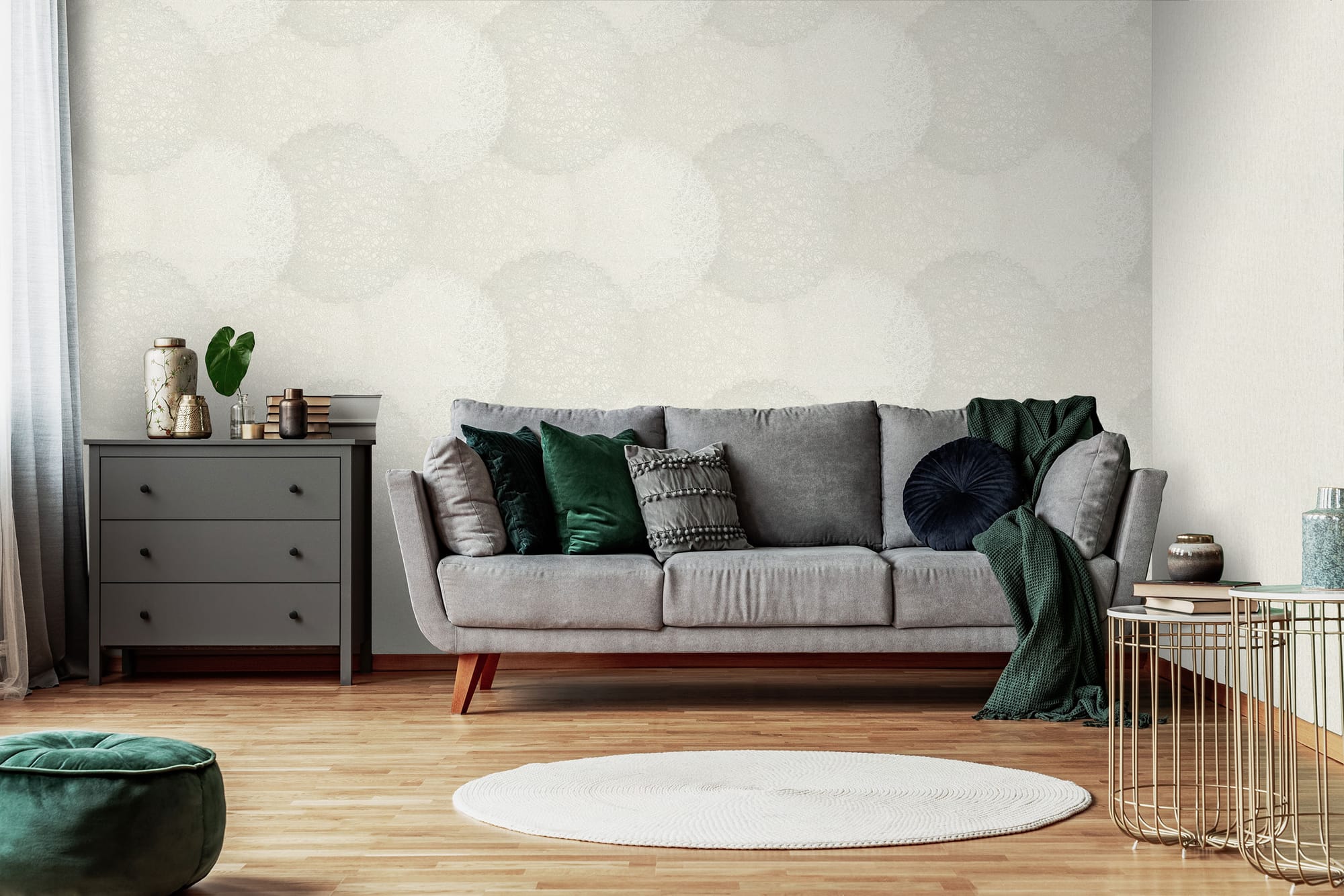Тонкие нити дополнены деликатными металлическими акцентами, которые мягко мерцают глянцевыми бликами, меняясь в зависимости от освещения и угла зрения. Текстильная фактура обоев имитирует плетёные бамбуковые ткани. Рельефное тиснение формирует выразительные волокна, тактильно напоминающие лёгкую соломенную текстуру и усиливающие ощущение природной аутентичности. Цветовая палитра коллекции построена на нейтральной гамме, вдохновлённой закатами и песчаными пляжами: от чистого снежно-белого и оттенков слоновой кости с кремовым подтоном до глубокого графитового серого и насыщенного индиго. Коллекция дополнена однотонными фонами с матовой, бархатистой фактурой и тонкими сияющими вкраплениями. «Samui» превращает стены в оазис расслабления и внутреннего покоя — пространство, где узор, фактура и цвет сливаются в единую атмосферу тропического блаженства и современной эстетики.