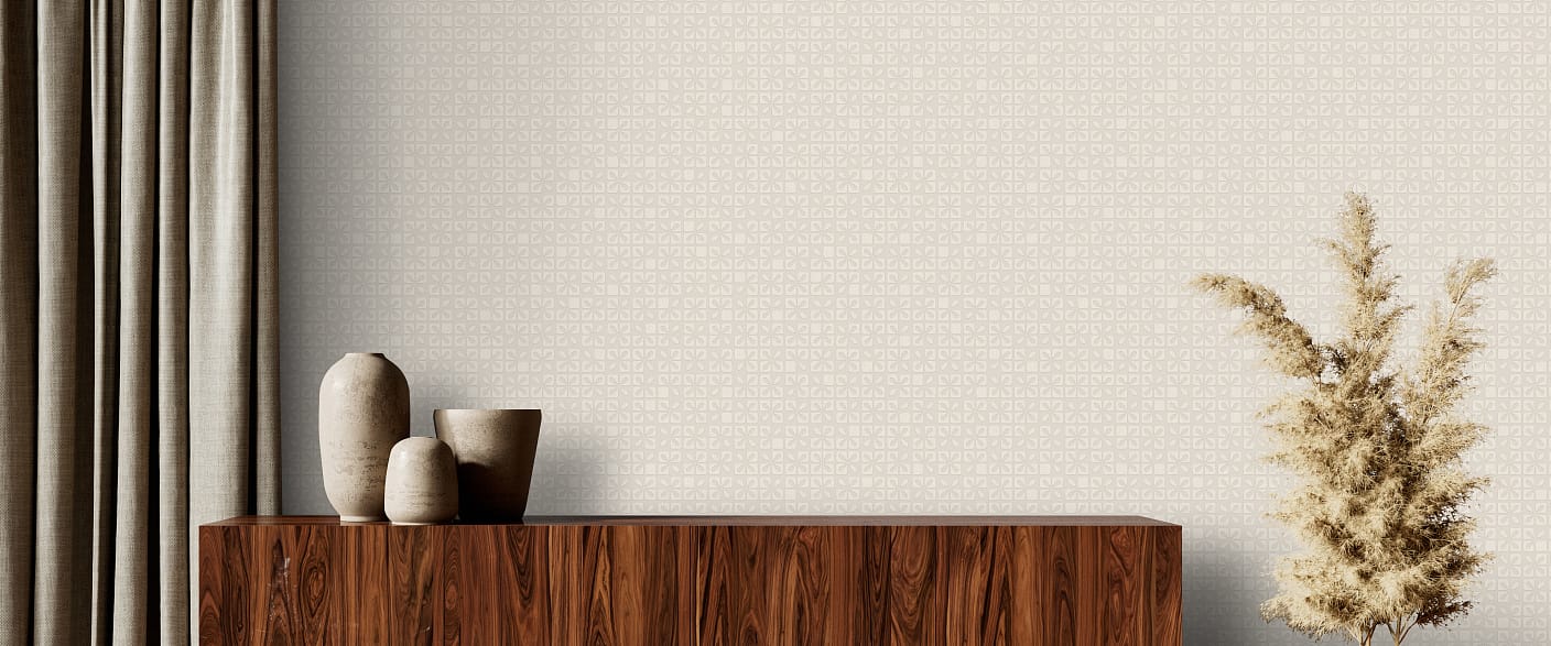 Деликатный орнамент раскрывается тактично и ритмично, добавляя пространству глубину без перегруженности. Линейка представлена в светлом, воздушном звучании, что делает его универсальным для оформления всех четырёх стен.