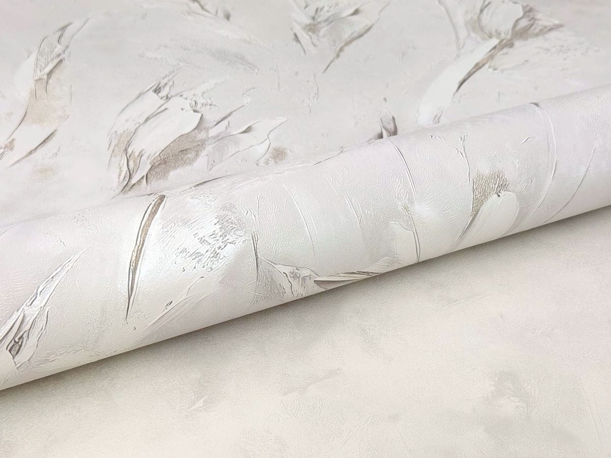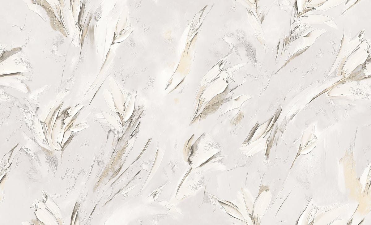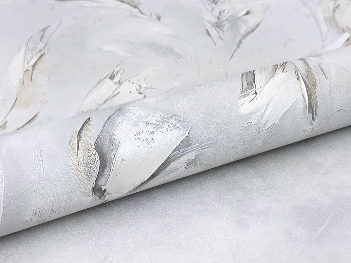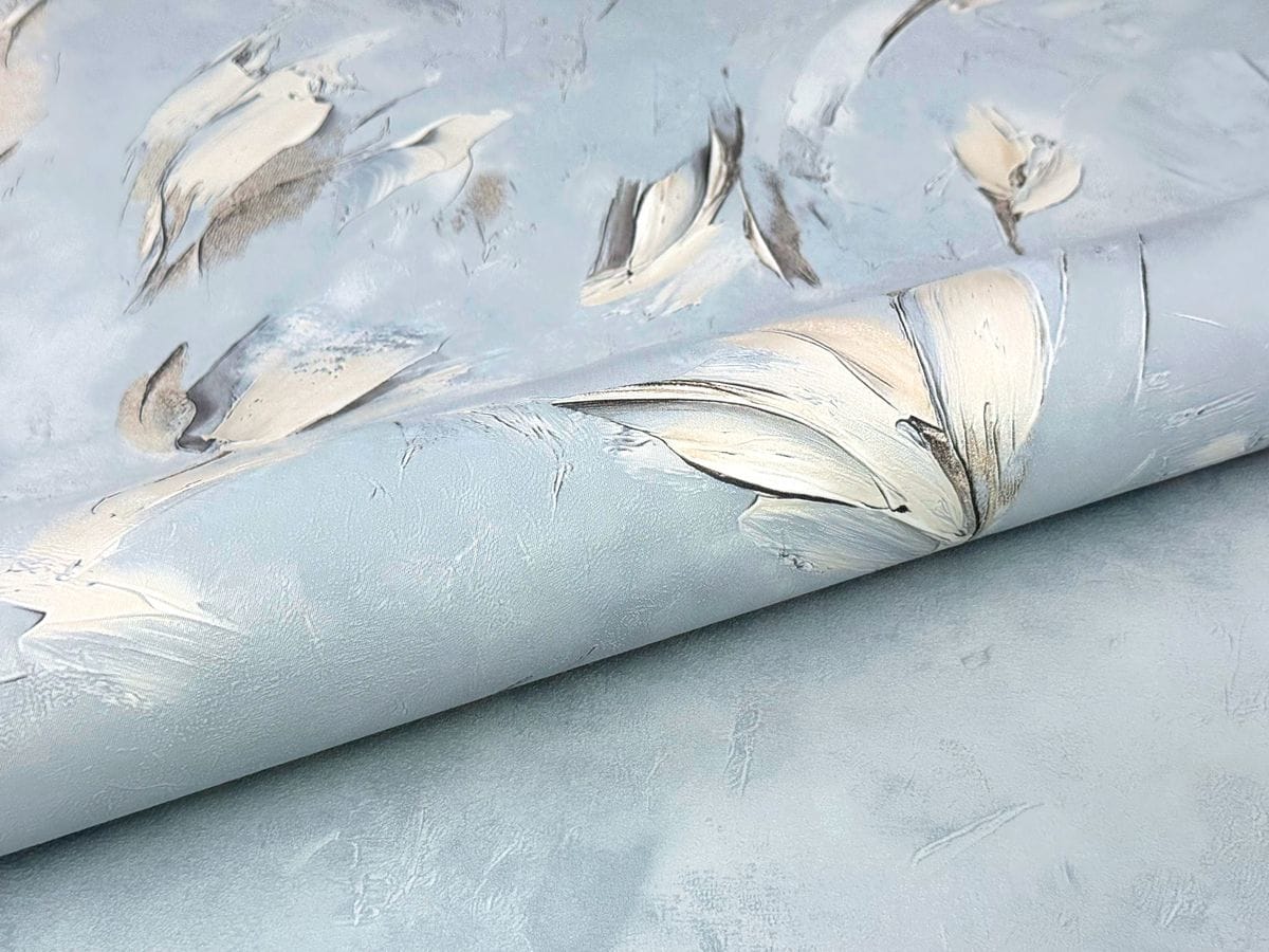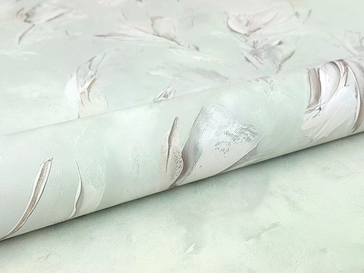 Абстрактный мотив напоминает очертания цветов, выполненных в оригинальной манере. Сияющий тонкий шиммер и эффекты металлик совместно с тиснением подчеркивают контуры рисунка, делая его еще более реалистичным.