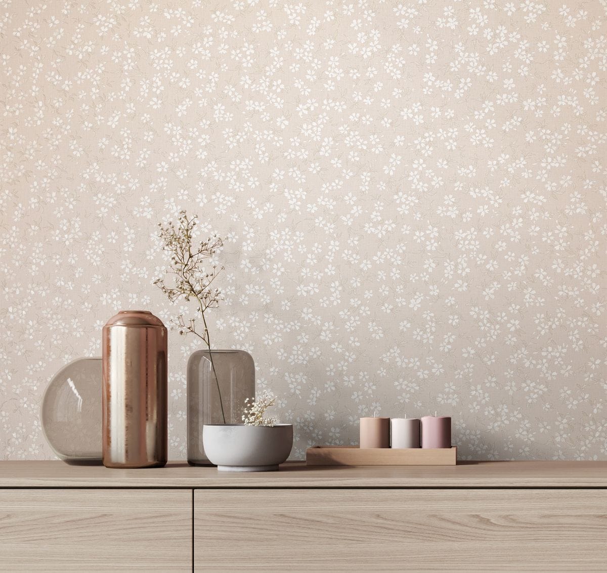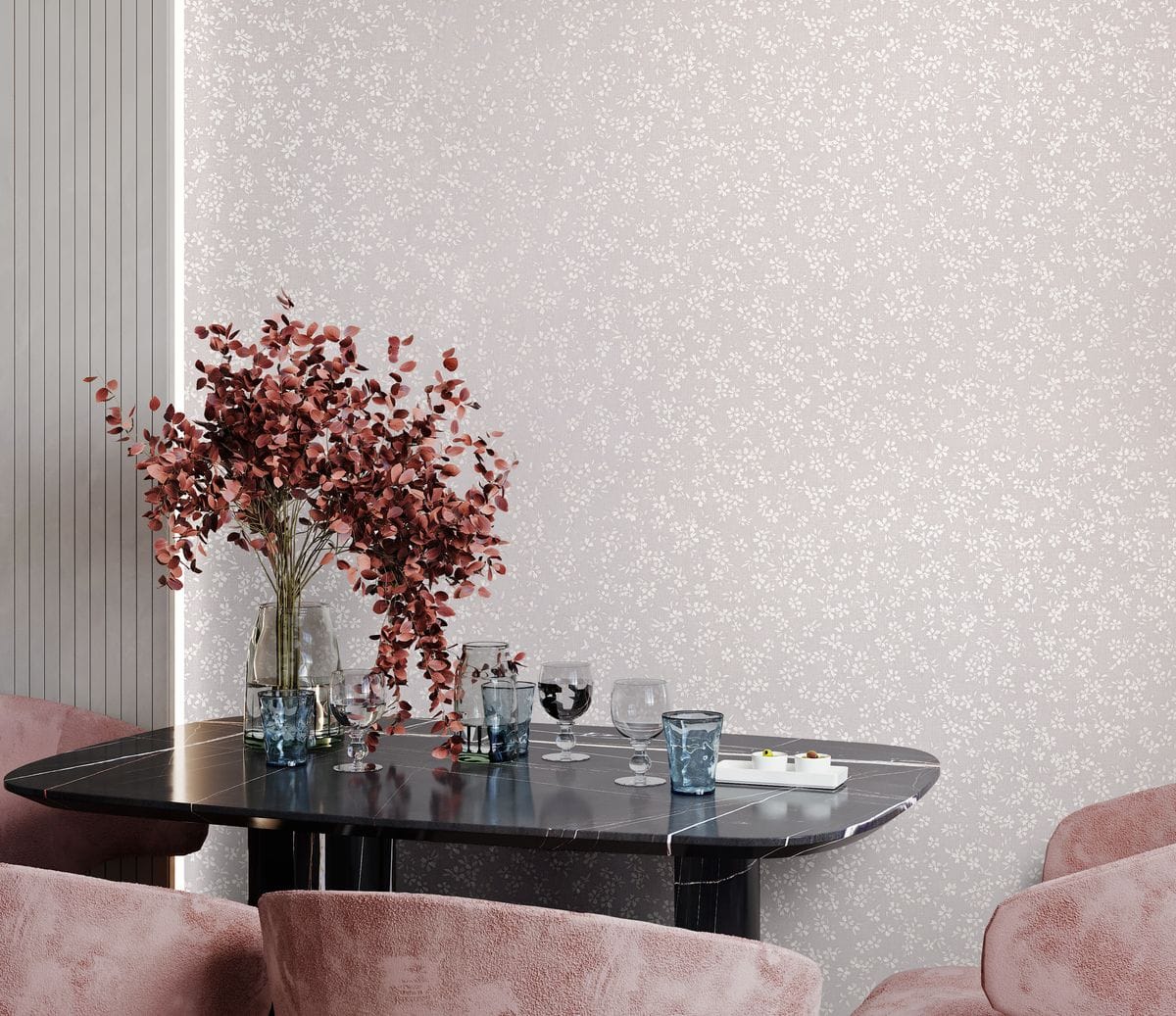 Лёгкие, изящные монохромные цветочки словно рассыпаны по уютному текстильному фону лёгким весенним ветром - идеальное сочетание для создания романтичных женских интерьеров и для использования мотива на все четыре стены. Актуальная, абсолютно матовая фактура компаньонов и натуральные колористики усиливают природное звучание коллекции.