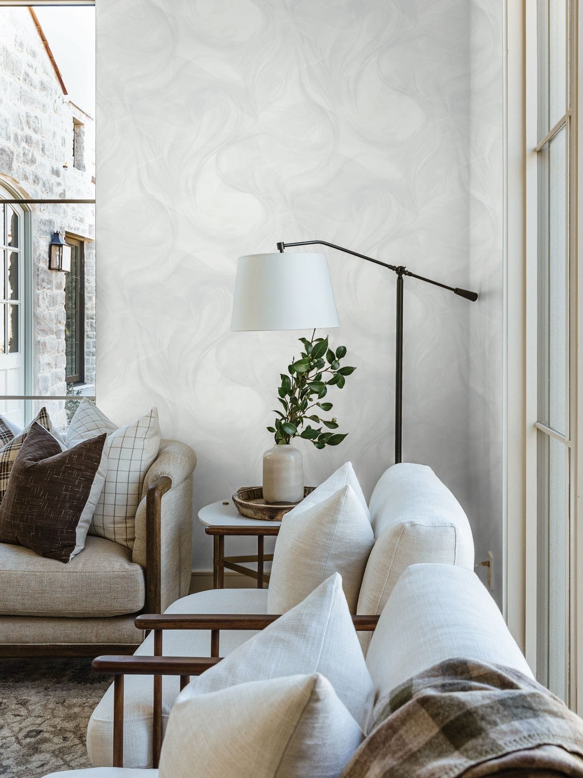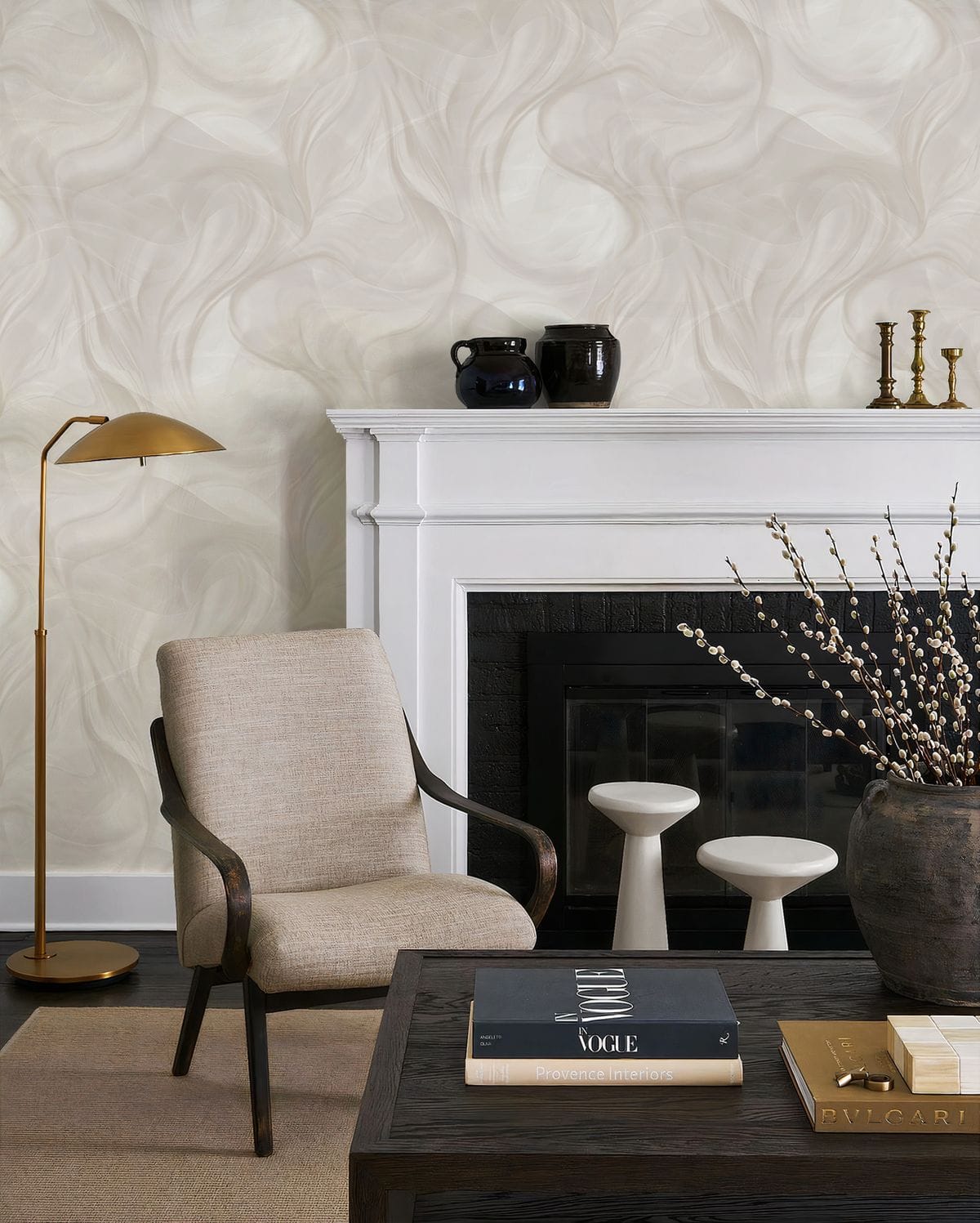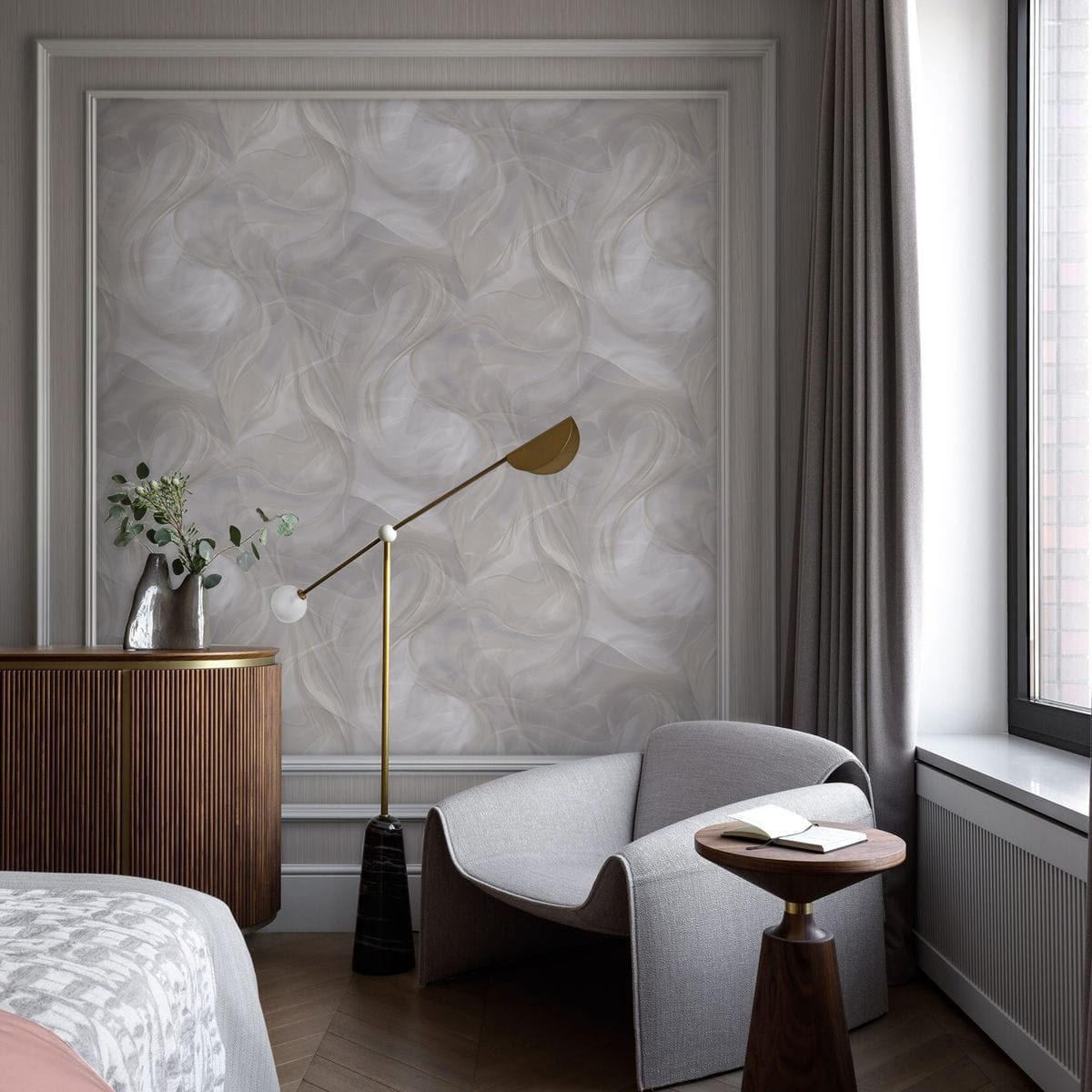 Эффект перламутрового мерцания добавляет изысканности, играя на свету и создавая волшебные блики, которые меняются в зависимости от времени суток и угла зрения. Такие обои идеально подойдут для создания уютного интерьера в спальне, элегантного кабинета или современного пространства гостиной. Они легко комбинируются с различными элементами декора и мебелью.