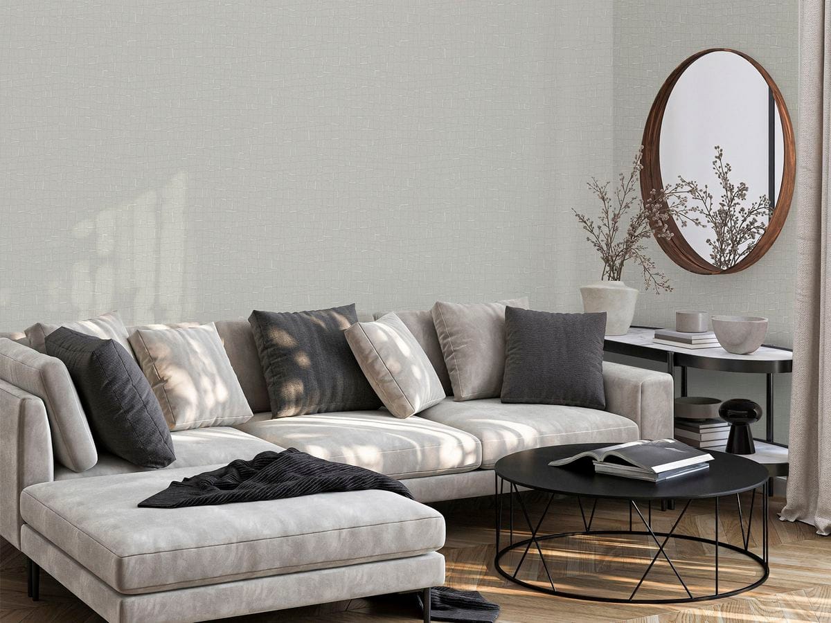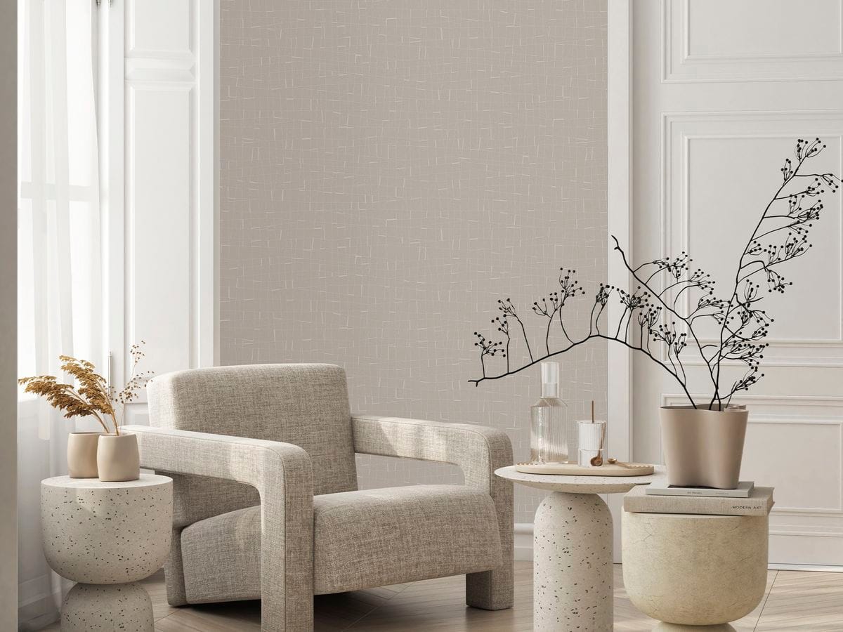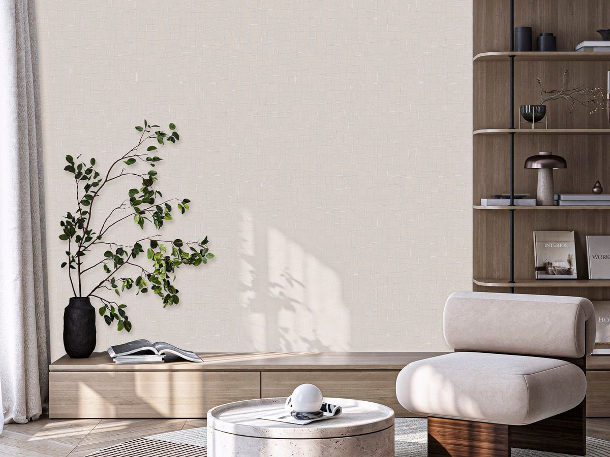 Мы вновь экспериментируем с геометрией. В этот раз мы создали едва заметный, но выразительный клетчатый принт. Он добавляет глубину и интерес пространству, при этом оставаясь нейтральным и универсальным. Фактура обоев создает ощущение мягкости и тепла, визуально напоминая текстиль.