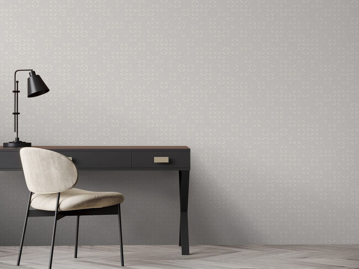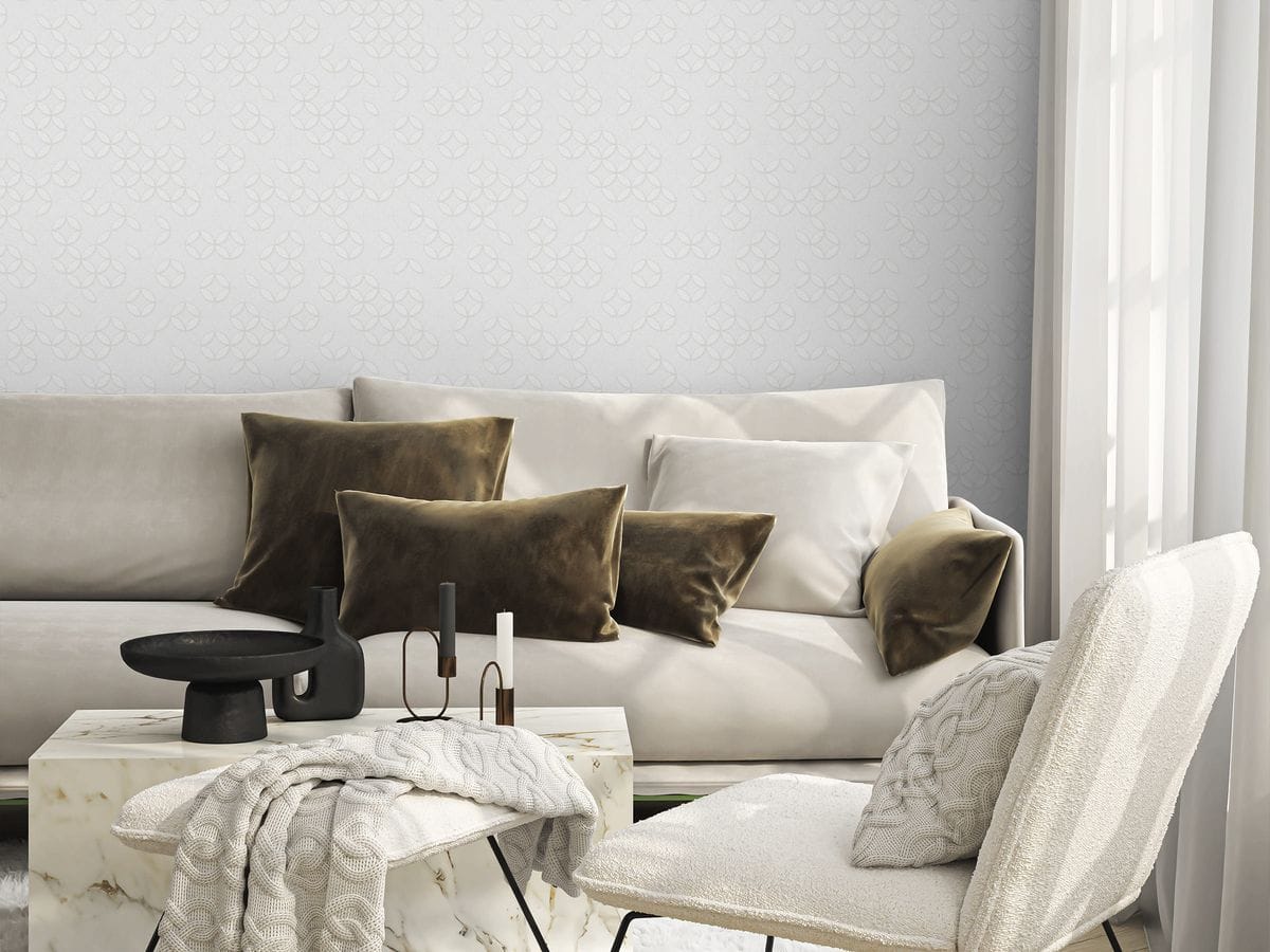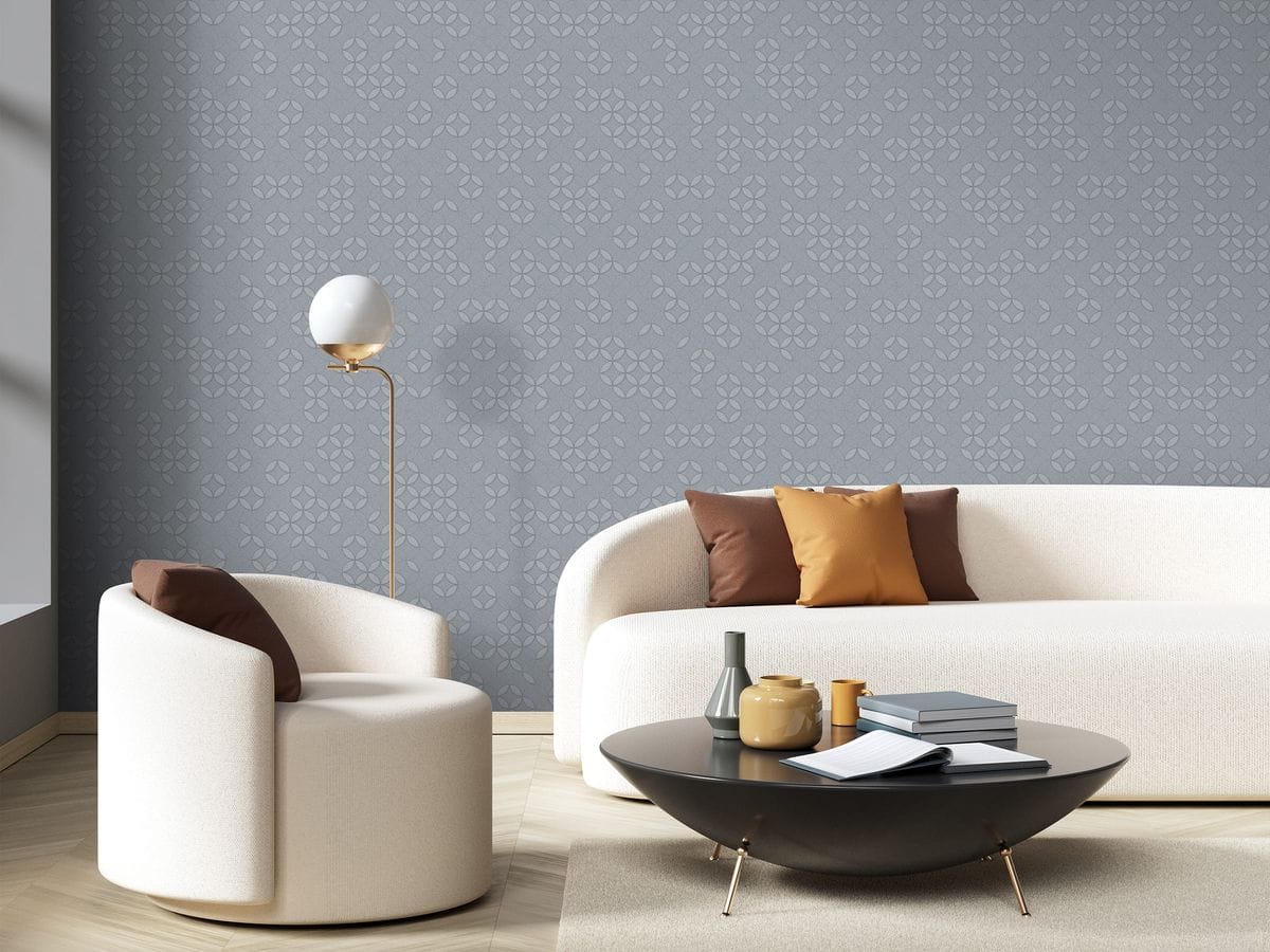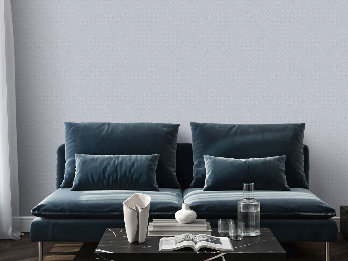 Мелкая геометрия с плавными, переплетающимися линиями создаёт изысканный ритм на поверхности стены. Рисунок выглядит деликатно и интеллигентно: он не перегружает пространство, а добавляет глубину, фактуру и ощущение продуманного дизайна. Это тот самый «тихий люкс», который считывается на уровне ощущений.