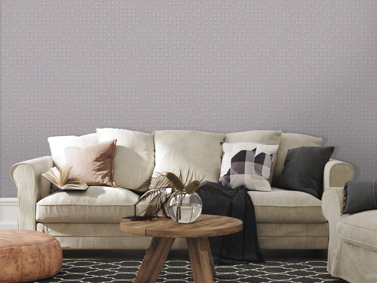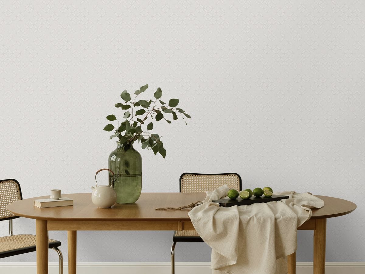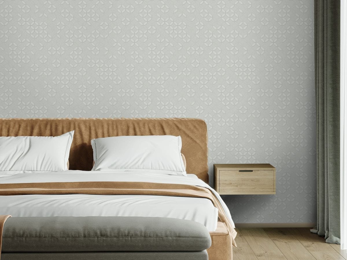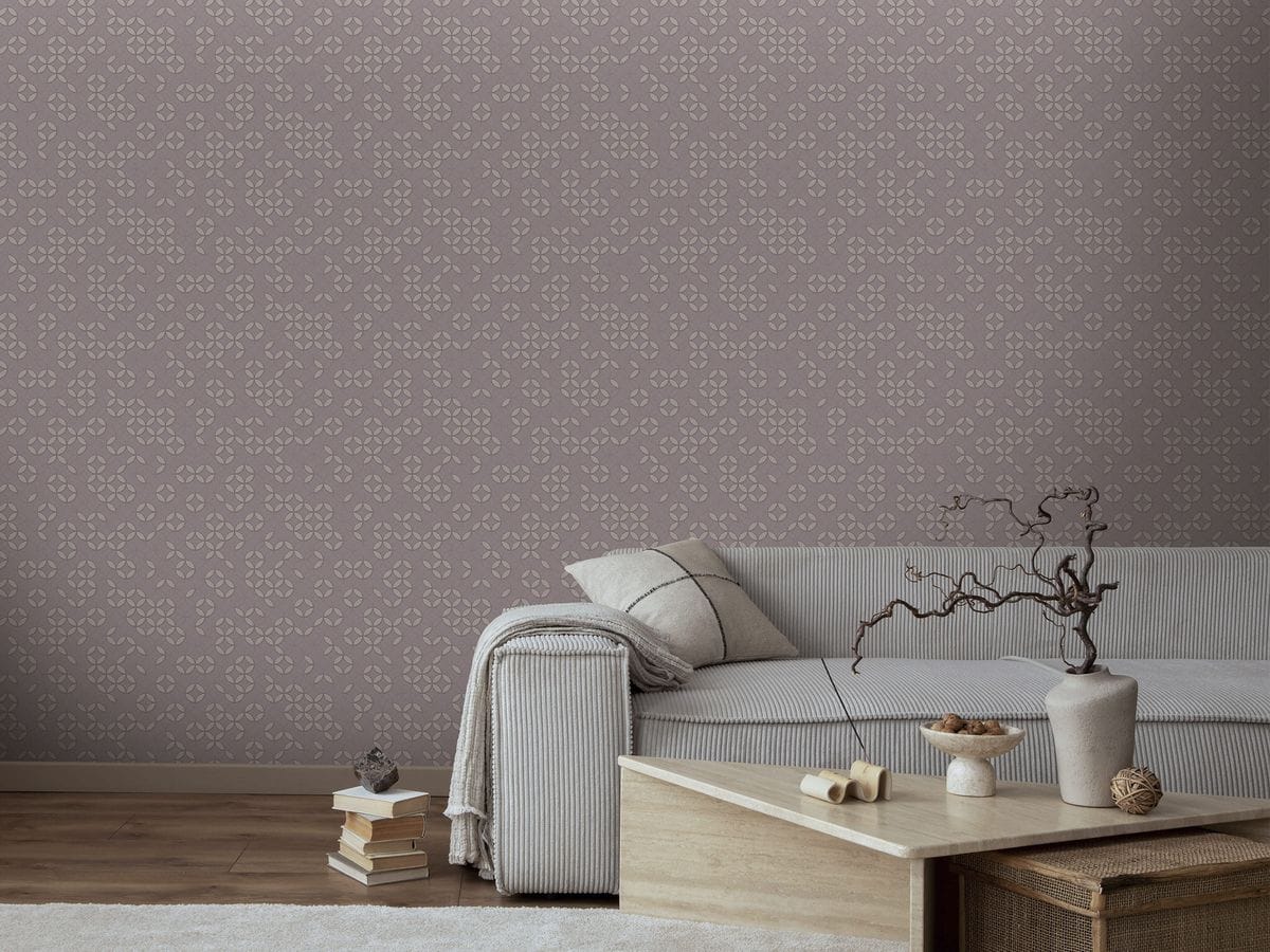 Мелкая геометрия с плавными, переплетающимися линиями создаёт изысканный ритм на поверхности стены. Рисунок выглядит деликатно и интеллигентно: он не перегружает пространство, а добавляет глубину, фактуру и ощущение продуманного дизайна. Это тот самый «тихий люкс», который считывается на уровне ощущений.