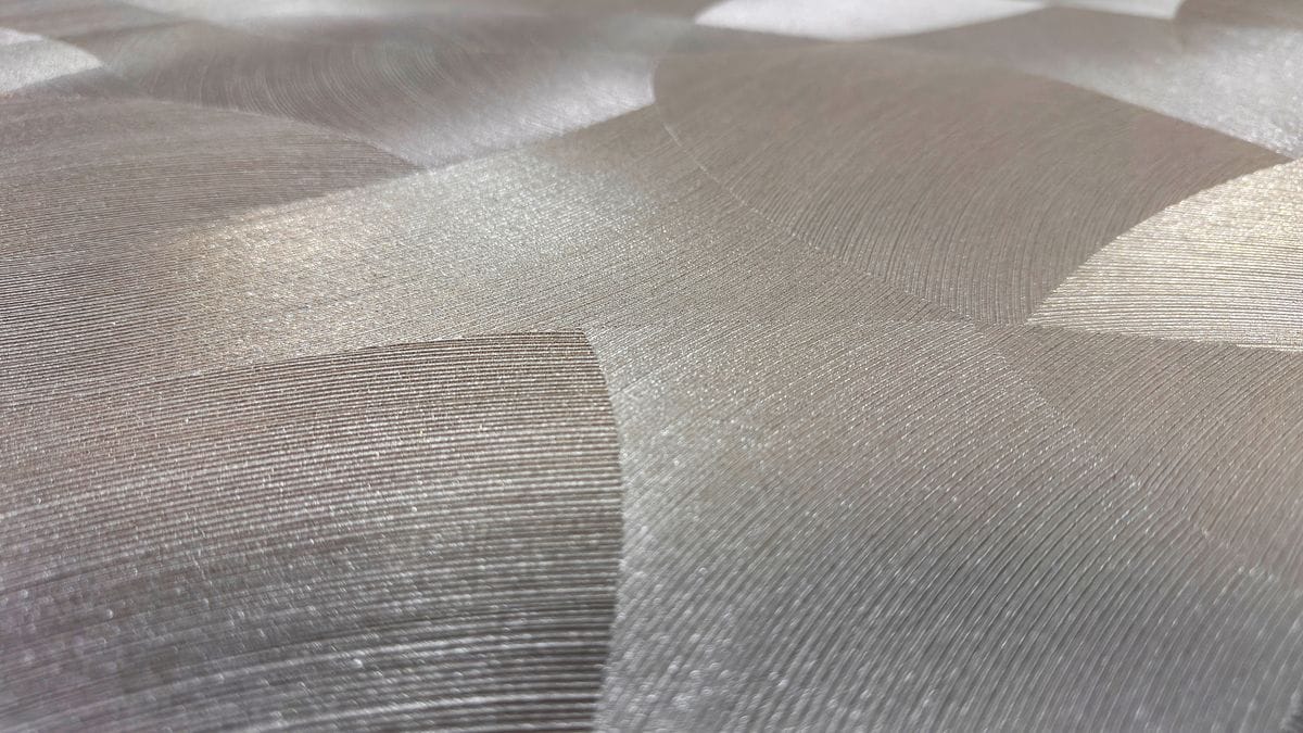 Узор украшен перламутровым покрытием: тонкий слой жемчужного напыления отражает свет, создавая переливы: от матового сияния до лёгкого блеска. Цветовая палитра коллекции охватывает нюансы серо-бежевого спектра, от холодного серебристого до тёплого песочного. Среди них: серый с холодным металлическим отливом, кремовый бежевый с мягким молочным подтоном, светло-серый с лёгким дымчатым оттенком, тёплый коричневый, близкий к мокко, глубокий графитовый с серебристыми бликами и платиновый с перламутровым сиянием.