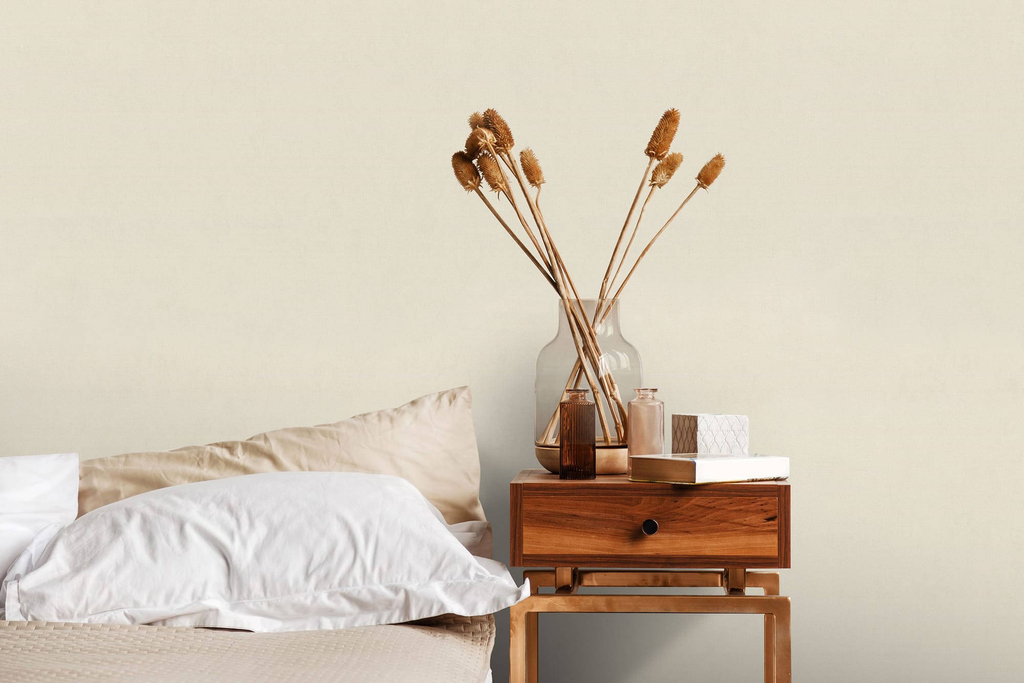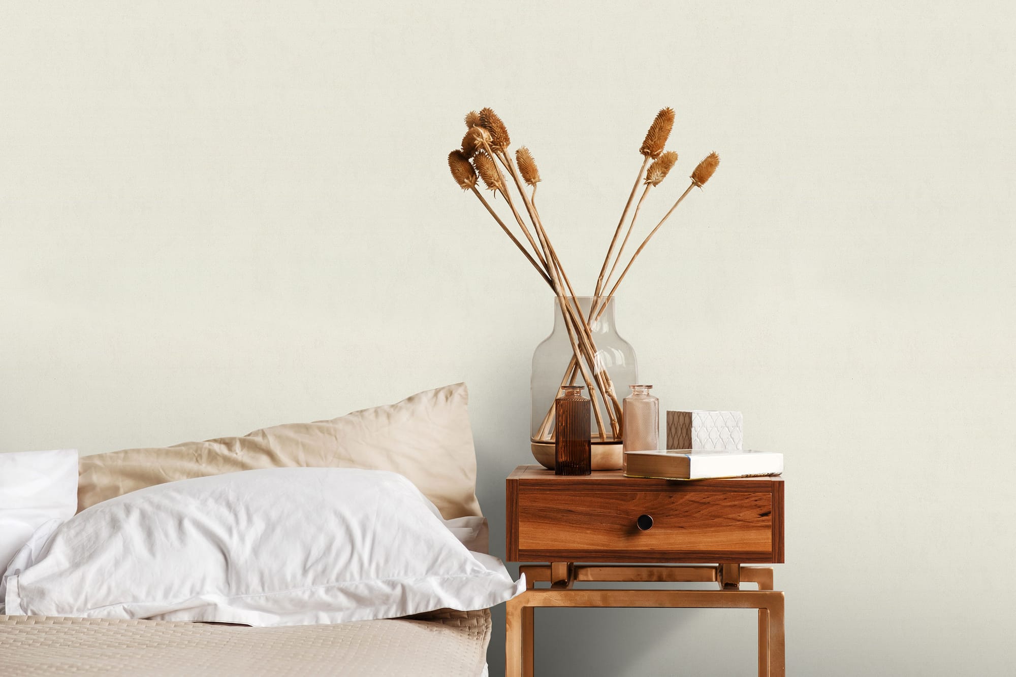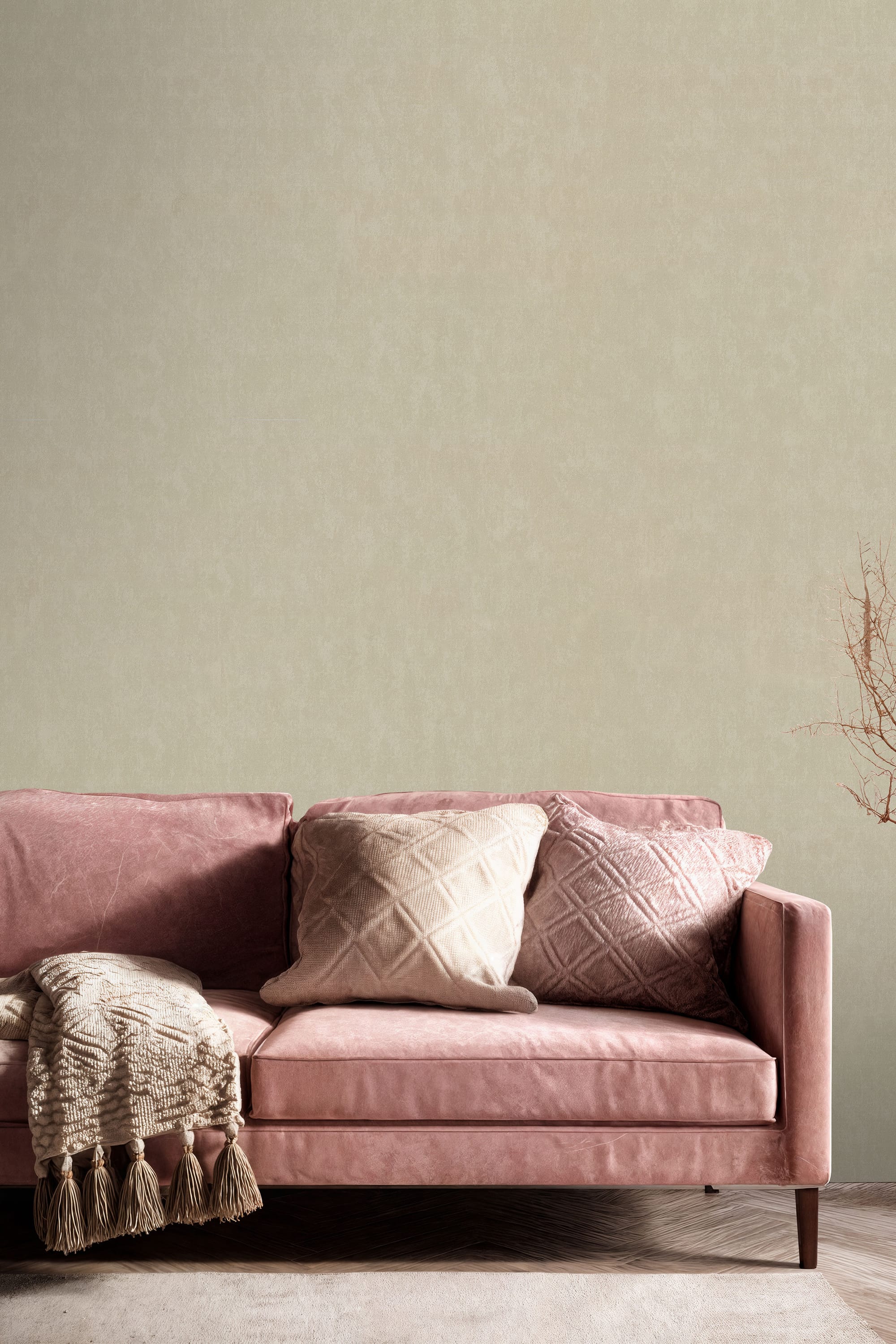 Фактура обоев имитирует текстиль — мягкую тканевую основу с лёгким рельефом, похожим на плотный шёлк или льняное полотно, что придаёт материалу приятную тактильность.