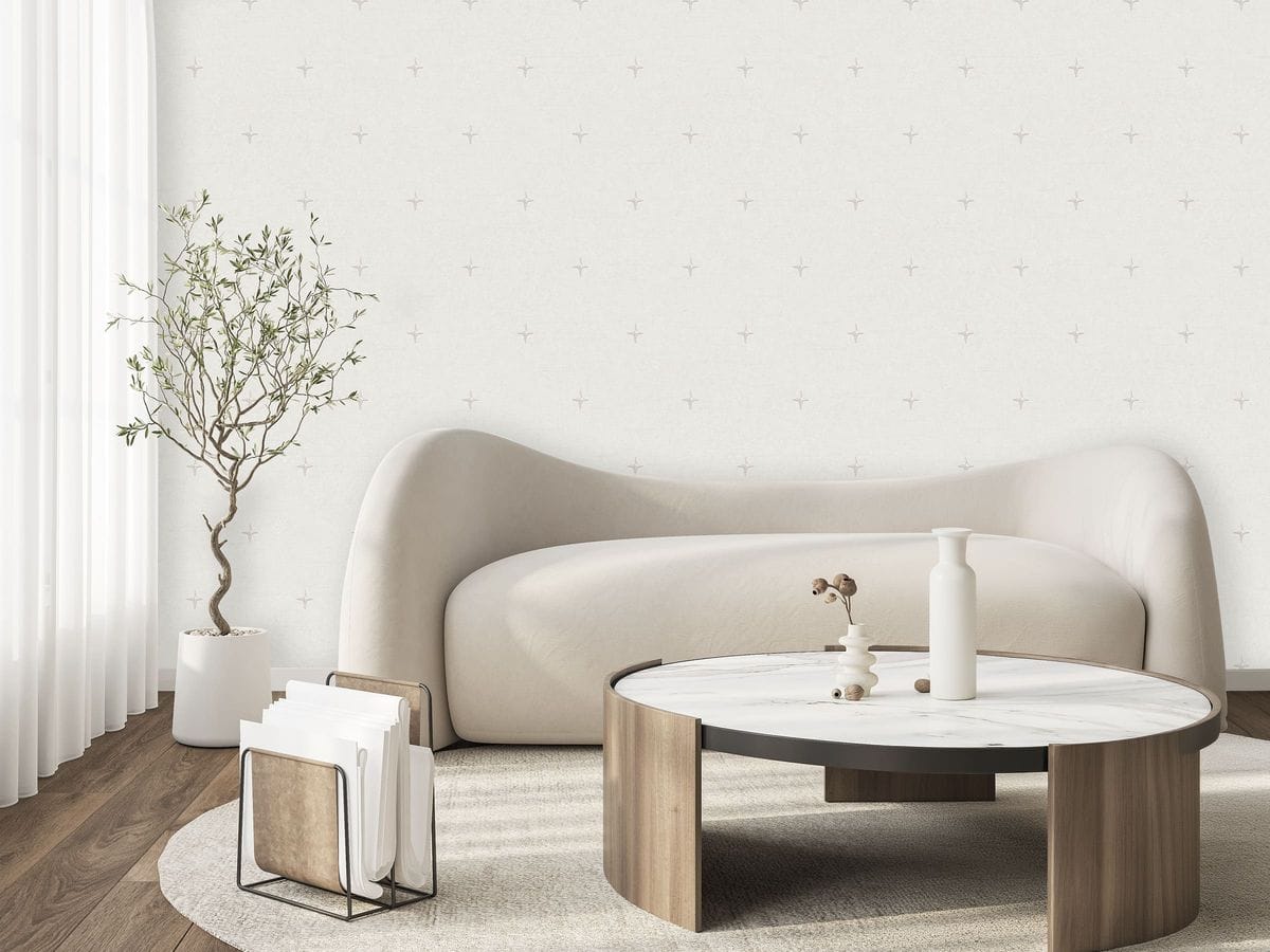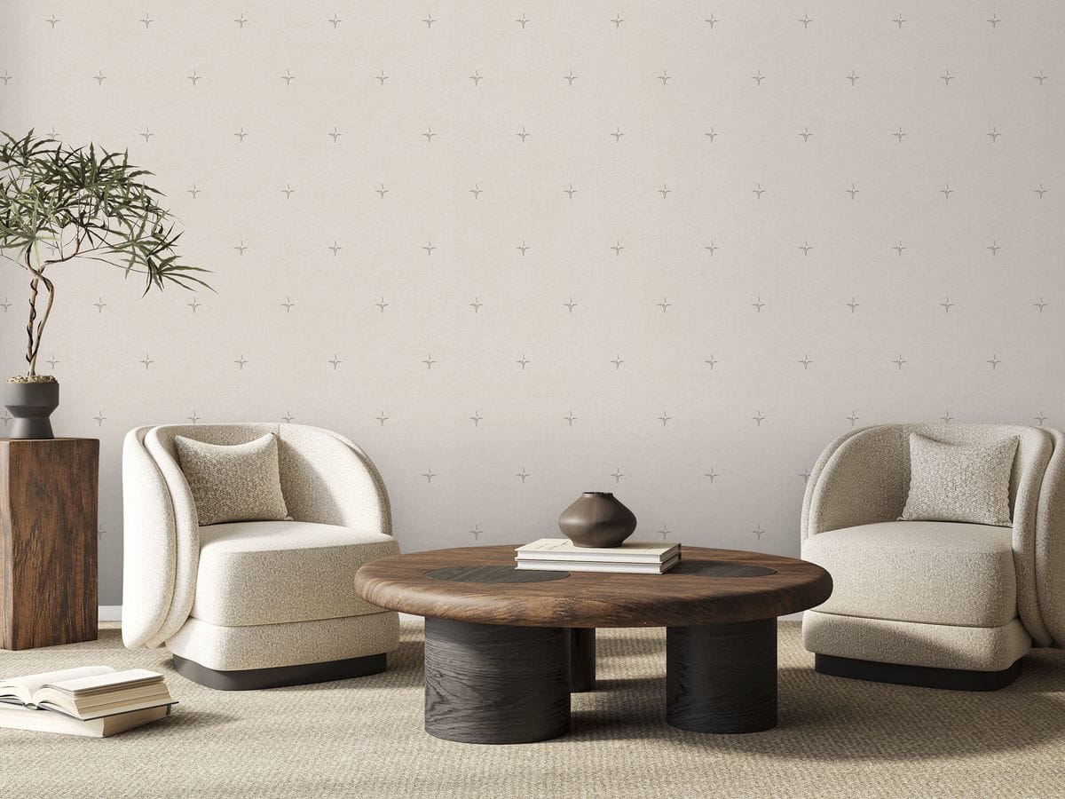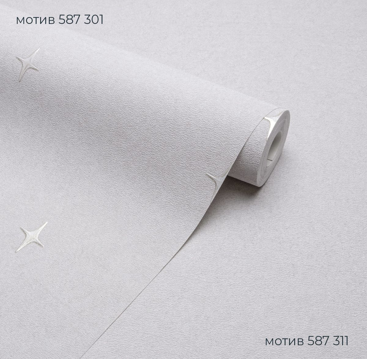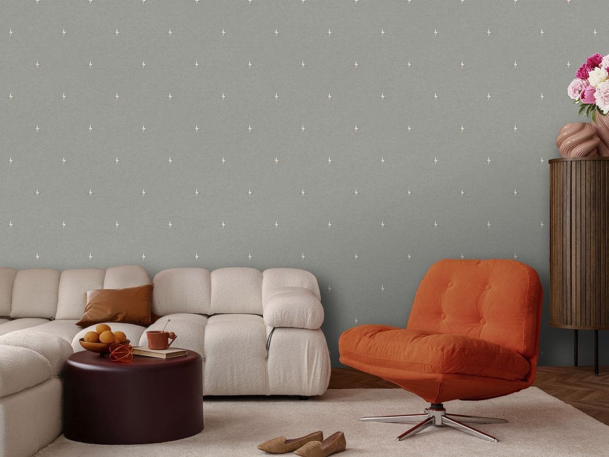 И на этом фоне — металлизированные звёзды. Стилизованные, графичные, с холодным мерцанием стали. Они не просто украшают поверхность — они создают движение. Свет скользит по металлу, вспыхивает и гаснет, меняя настроение интерьера в зависимости от угла и времени суток.