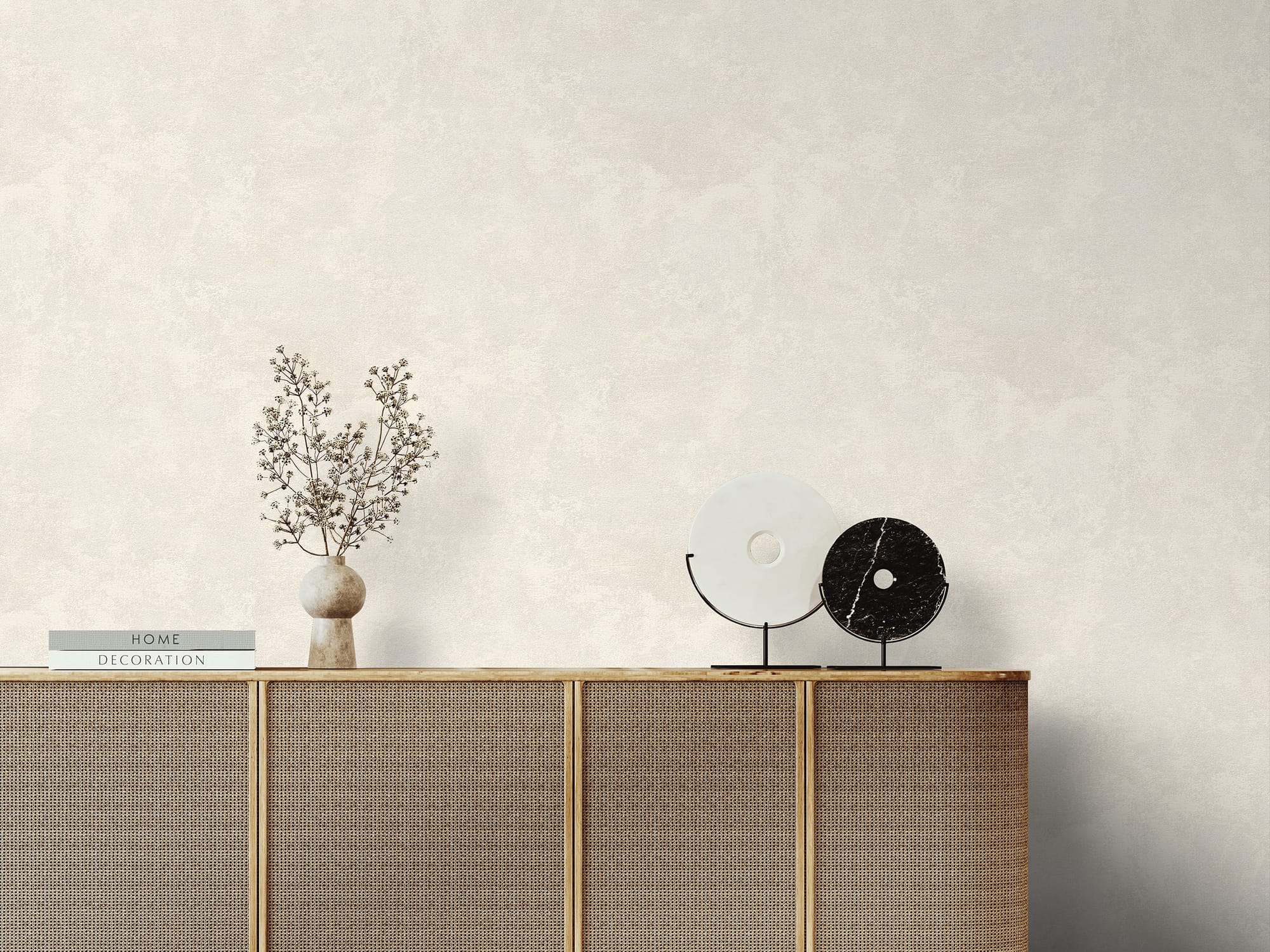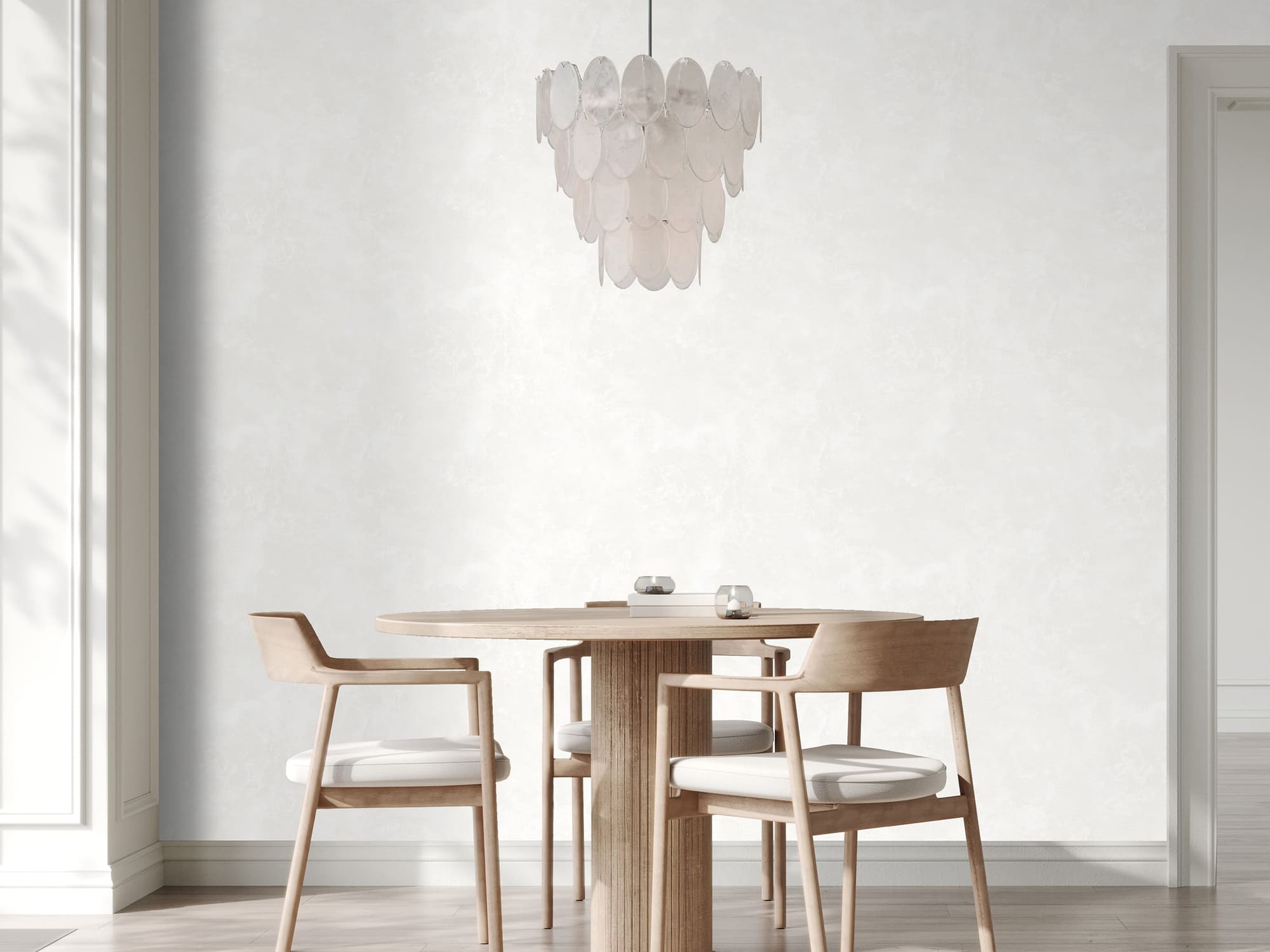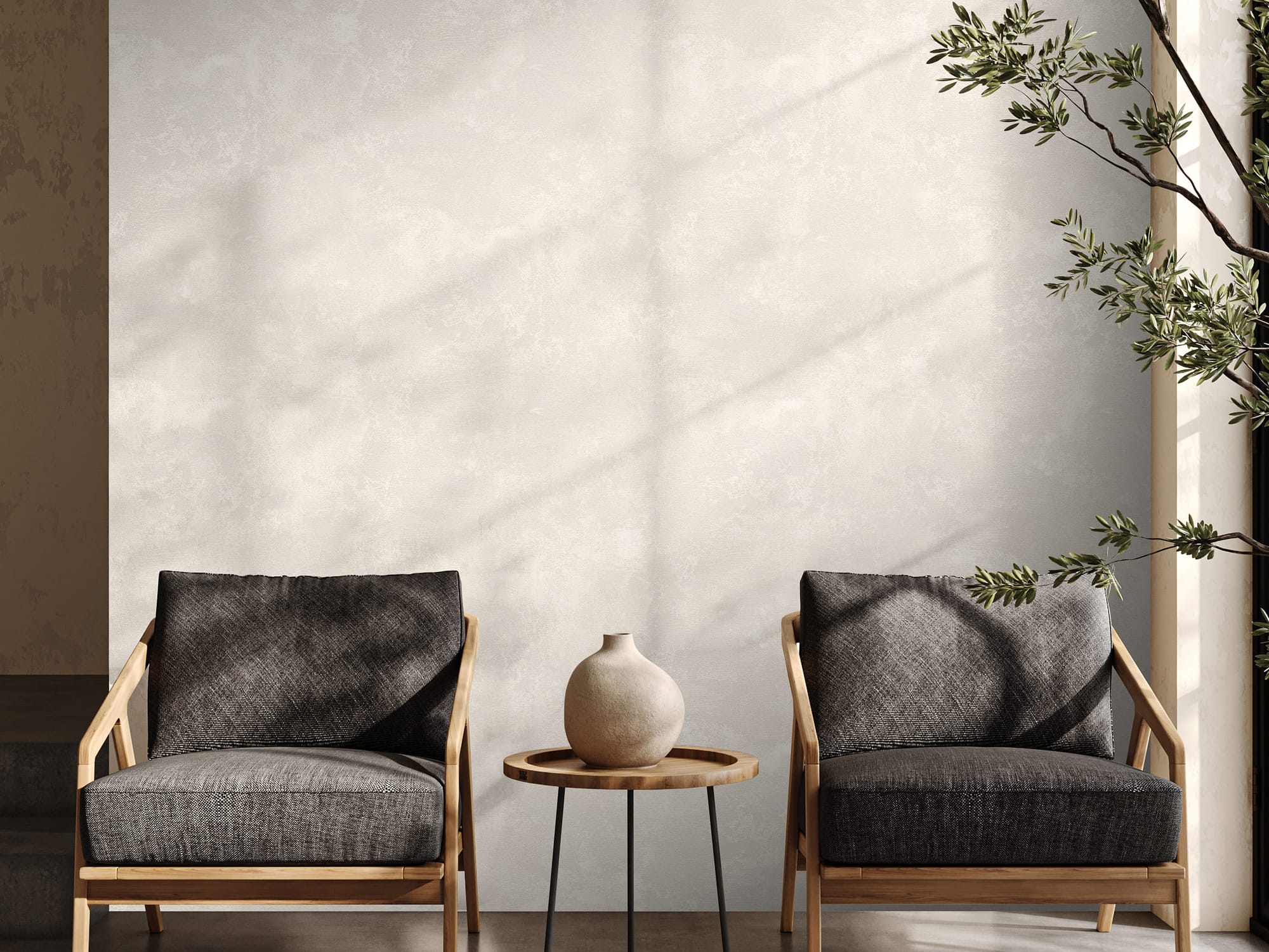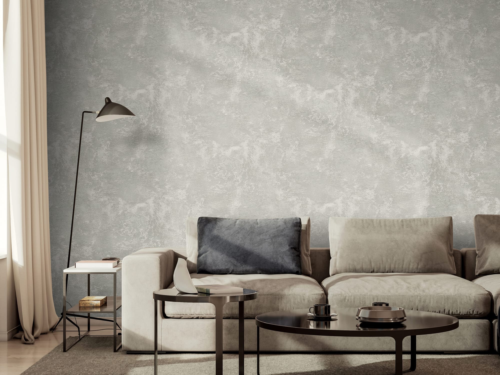 Фактура сложная, многослойная, тактильная. При естественном освещении она выглядит сдержанно и интеллигентно, а в искусственном свете — приобретает выразительность и характер. Пространство начинает «дышать», наполняясь глубиной и динамикой.